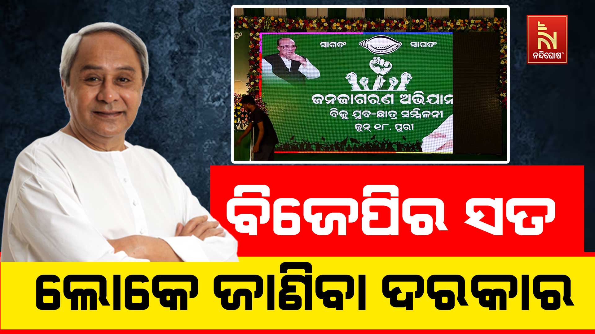 ଆୟୁଷ୍ମାନ କାର୍ଡ ଧରି ରୋଗୀମାନେ ହସପିଟାଲରୁ ଫେରୁଛନ୍ତି। ରାଜ୍ୟର ଅର୍ଥନୀତି ତଳମୁହାହିଁ। ନୂଆ ଓ ଛାତ୍ରବୃତ୍ତିକୁ ବନ୍ଦ କରିଦେଲେ। ଅପରାଧ ମଧ୍ୟ ବଢ଼ିଛି। ବିଜେପିର ଏହି ସବୁ ବିଫଳତାକୁ ଲୋକଙ୍କ ସାମ୍ନାକୁ ଆଣିବା ପାଇଁ ଯୁବ ଓ ଛାତ୍ର ବିଜେଡିକୁ ଆହ୍ବାନ ଦେଇଛନ୍ତି ନବୀନ ପଟ୍ଟନାୟକ। ସେ କହିଛନ୍ତି ସୋସିଆଲ ମିଡିଆରେ ଏସବୁ କଥା ଉଠାନ୍ତୁ। ଲୋକେ ସତ ଜାଣିବା ଦରକାର। ଯୁବ ସମାଜ ସତ୍ୟର ସାରଥୀ ହୋଇ ମିଛର କାଉଣ୍ଟର କରନ୍ତୁ। ବିଜେପିର ମିଛ ପ୍ରଚାର ବିରୋଧରେ ଏହି ଜନଜାଗରଣ ଅଭିଯାନ ବୋଲି କହିଛନ୍ତି ନବୀନ ପଟ୍ଟନାୟକ ।