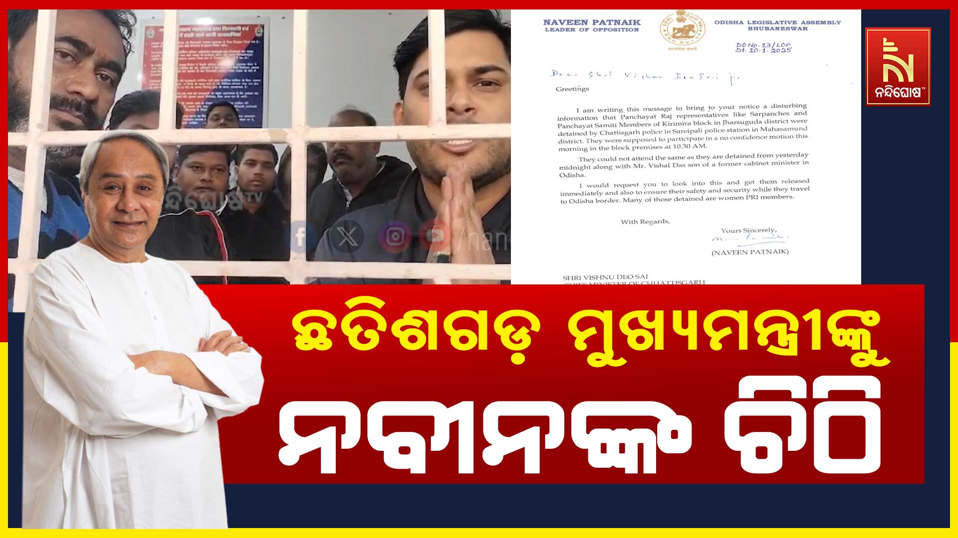 ଭୁବନେଶ୍ବର : ଛତିଶଗଡ଼ ମୁଖ୍ୟମନ୍ତ୍ରୀଙ୍କୁ ଚିଠି ଲେଖିଲେ ବିରୋଧୀ ଦଳ ନେତା ନବୀନ ପଟ୍ଟନାୟକ । ଛତିଶଗଡ଼ ସରେଇପାଲି ଥାନାରେ ଅଟକ ଅଛନ୍ତି PRI ସଦସ୍ୟ । କିର୍ମିରା PRI ସଦସ୍ୟ ଅଟକ ପ୍ରସଙ୍ଗରେ ଚିଠି ଲେଖିଛନ୍ତି ନବୀନ । ଘଟଣାରେ ଛତିଶଗଡ଼ ମୁଖ୍ୟମନ୍ତ୍ରୀଙ୍କ ହସ୍ତକ୍ଷେପ ଲୋଡ଼ିଛନ୍ତି ନବୀନ । ଅଟକ PRI ସଦସ୍ୟଙ୍କ ମଧ୍ୟରେ ଅଛନ୍ତି କିଛି ମହିଳା।କିର୍ମିରା ବ୍ଲକ ବିରୋଧରେ ୧୨ ସଦସ୍ୟ ଆଣିଛନ୍ତି ଅନାସ୍ଥା । ସଦସ୍ୟ ଉପସ୍ଥିତ ନରହିବାରୁ ସ୍ଥଗିତ ରହିଲା ଅନାସ୍ଥା ଭୋଟ । ଅନାସ୍ଥାରେ ହାରିଯିବା ଭୟରେ ବିଜେପି ଏଭଳି ଚକ୍ରାନ୍ତ କରିଥିବା ଅଭିଯୋଗ ହୋଇଛି । ନବ ଦାସଙ୍କ ପୁଅ ବିଶାଲଙ୍କୁ ଛତିଶଗଡରେ ଅଟକ ରଖାଯାଇଛି । ଭୋଟରେ ସାମିଲ ନହୋଇପାରିବା ଲାଗି ଚକ୍ରାନ୍ତ ହୋଇଛି ।