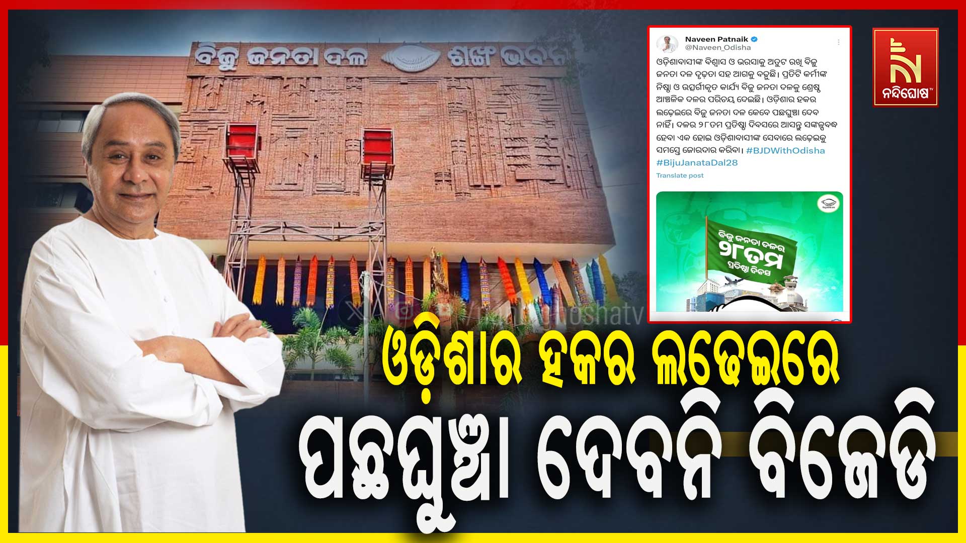 ଅନ୍ୟପଟେ ବିଜେଡିର ୨୮ତମ ପ୍ରତିଷ୍ଠା ଦିବସ ଅବସରରେ ଶଙ୍ଖ ଭବନରେ ଆୟୋଜିତ ହୋଇଛି ରାଜ୍ୟସ୍ତରୀୟ କାର୍ଯ୍ୟକ୍ରମ । ଯେଉଁଥିରେ ବିଜେଡି ସଭାପତି ନବୀନ ପଟ୍ଟନାୟକ ସକାଳ ୧୧ଟାରେ ଯୋଗ ଦେଇ ଉଦବୋଧନ ଦେବେ । ତାଙ୍କ ଉଦବୋଧନକୁ ଉତ୍ସାହ ସହ ଅପେକ୍ଷା କରିଛନ୍ତି ବିଜେଡି ନେତା ଓ କର୍ମୀ । ଶଙ୍ଖ ଭବନ ସହ ରାଜ୍ୟର ସମସ୍ତ ନିର୍ବାଚନ ମଣ୍ଡଳୀରେ ବି ପ୍ରତିଷ୍ଠା ଦିବସ ପାଳନ କରାଯିବ ।