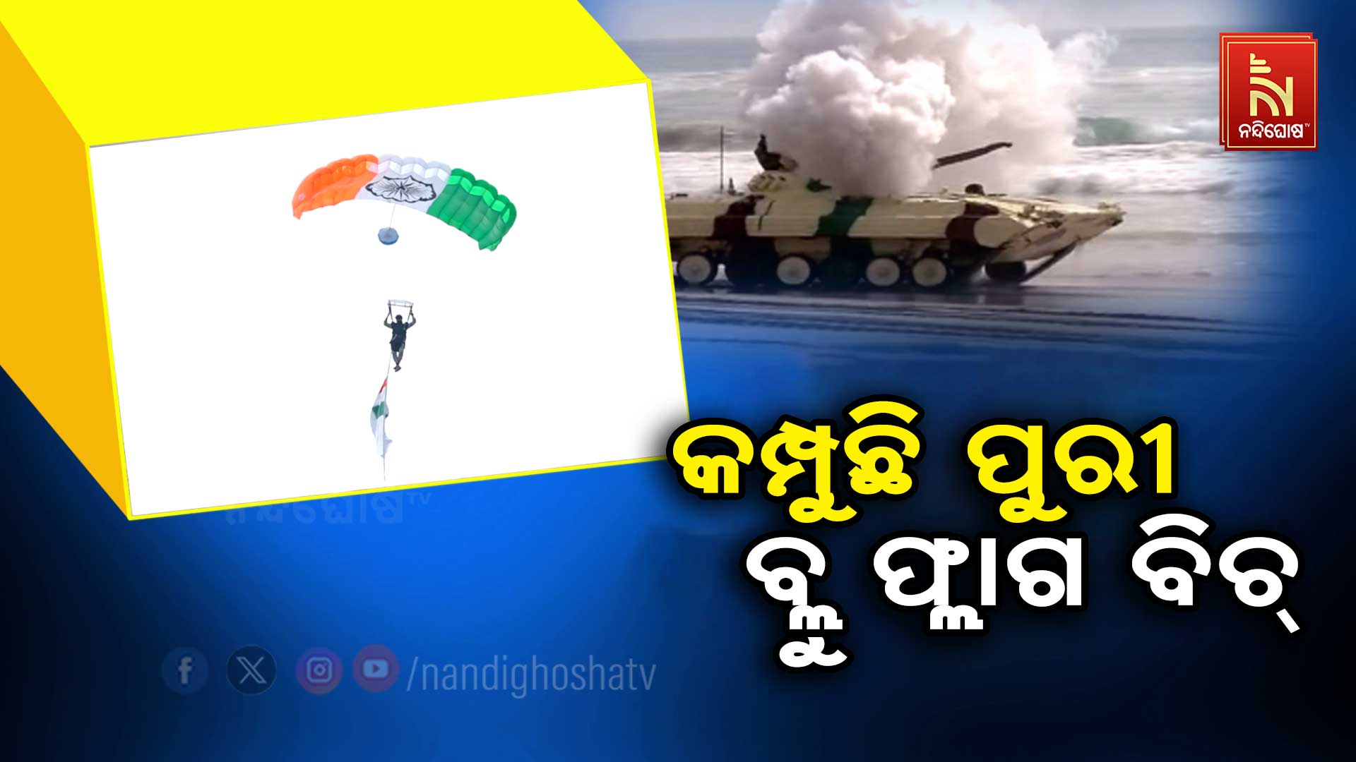 ପୁରୀ: ପୁରୀ ବ୍ଲୁ ଫ୍ଲାଗ ବେଳାଭୂମି ଉପରେ ଏବେ ନା କେବଳ ଦେଶ ବରଂ ଅନ୍ୟ ରାଷ୍ଟ୍ରଙ୍କ ନଜର । କାରଣ ଆସନ୍ତା ୪ ତାରିଖରେ ଏହି ବ୍ଲୁ ଫ୍ଲାଗ ବେଳାଭୂମିରୁ ସାରା ବିଶ୍ବ ଦେଖିବ ଭାରତୀୟ ନୌସେନାର ବୀରତ୍ବ । ଜଳ, ସ୍ଥଳ ଓ ଆକାଶରେ ନୌସେନାର ଯୋଦ୍ଧା ଯବାନ ଦେଖାଇବେ ସେମାନଙ୍କ ଯୁଦ୍ଧ କଳାକୌଶଳ । ନୌସେନା ଦିବସ ଉପଲକ୍ଷେ ପୁରୀରେ ହାଇଆଲର୍ଟ ଜାରି କରାଯାଇଥିବା ବେଳେ ରାଷ୍ଟ୍ରପତିଙ୍କ ଗସ୍ତ ଥିବାରୁ କଟକଣା ଲାଗୁ କରାଯାଇଛି । ସେପଟେ ବେଳାଭୂମିରେ ପରେଡ ସାଙ୍ଗକୁ ବୀର ଯୋଦ୍ଧା ଚଲାଇଛନ୍ତି ଜୋରଦାର ରିହରସାଲ । ମାର୍କୋସ କମାଣ୍ଡୋଙ୍କର ସ୍ୱତନ୍ତ୍ର ଅପେରସନ ସହ ଭିନ୍ନ ଭିନ୍ନ ସମରକୌଶଳ ପ୍ରଦର୍ଶନ ସହ ପଇଁତରା ମାରୁଛି ହେଲିକପ୍ଟର ।