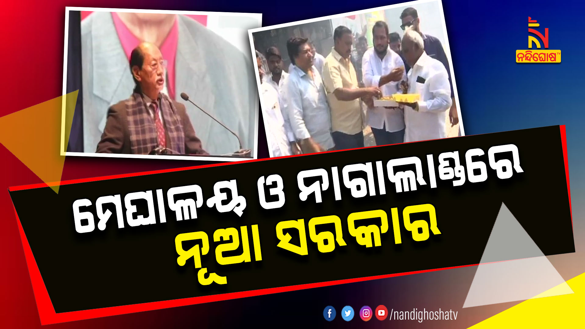 ନାଗାଲାଣ୍ଡର ମୋଟ ୬୦ ଆସନରୁ ଏନଡିପିପି-ବିଜେପି ମେଣ୍ଟ ୩୭ ଆସନରେ ବିଜୟ ଲାଭ କରି ସରକାର ଗଢ଼ୁଛି । ସେପଟେ ଆସନ୍ତାକାଲି ତ୍ରିପୁରାରେ ଶପଥ ନେବ ମାଣିକ ସରକାର । ୬୦ ଆସନରୁ ଆଇପିଫଟି-ବିଜେପି ମେଣ୍ଟ ୩୨ଟି ଆସନରେ ବିଜୟ ଲାଭ କରି ସରକାର ଗଢୁଛି । ତ୍ରିପୁରାରେ ପୁଣିଥରେ ମାଣିକ ଶାହା ମୁଖ୍ୟମନ୍ତ୍ରୀ ଭାବେ ଶପଥ ନେବେ । ଆସନ୍ତାକାଲି ଦିନ ୧୧ଟାରେ ଶପଥ ଗ୍ରହଣ ଉତ୍ସବ ଆୟୋଜିତ ହେବ ।