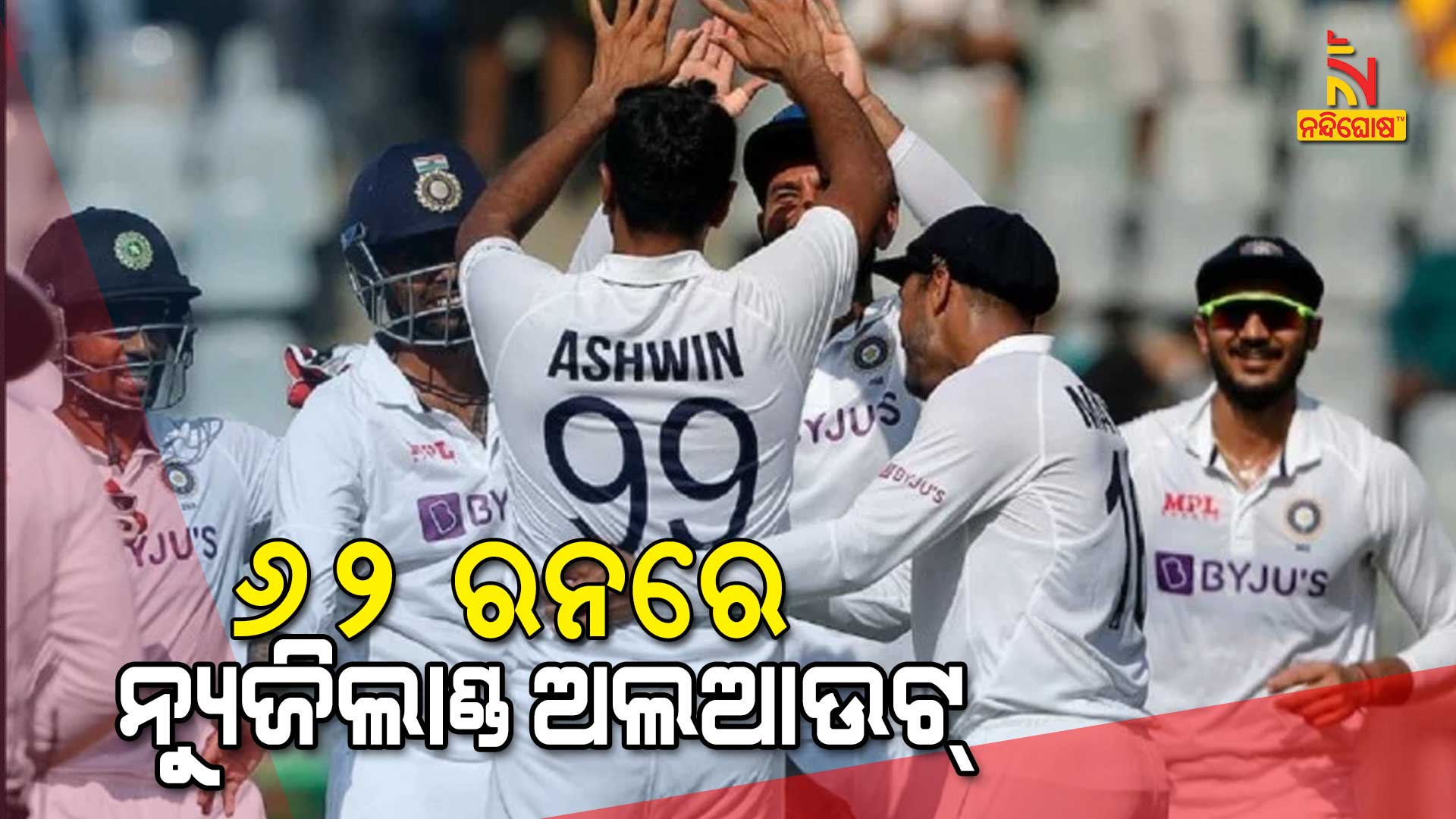 ପ୍ରଥମ ଇନିଂସରେ ଭାରତ ୩୨୫ ରନରେ ଅଲଆଉଟ କରିବା ପରେ ବ୍ୟାଟିଂ କରିବାକୁ ଆସିଥିଲା ନ୍ୟୁଜିଲାଣ୍ଡ । ପ୍ରଥମ ଇନିଂସରେ ବ୍ୟାଟିଂ କରିବାକୁ ଆସିଥିବା ନ୍ୟୁଜିଲାଣ୍ଡ ଆରମ୍ଭରୁ ବ୍ୟାଟିଂ ବିପର୍ଯୟର ସମ୍ମୁଖୀନ ହୋଇଥିଲା । ଭାରତର ବୋଲିଂ ଆଟାକ ଆଗରେ ଅଧିକ ସମୟ ତିଷ୍ଠି ପାରିନଥିଲା କିଓ୍ୱି ଟିମ୍ । କ୍ରମାଗତ ଭାବରେ ଓ୍ୱିକେଟ ଅକ୍ତିଆର କରି ନ୍ୟୁଜିଲାଣ୍ଡକୁ ବ୍ୟାକଫୁଟରେ ରଖିଥିଲା ଟିମ୍ ଇଣ୍ଡିଆ । ଯାହା ଫଳରେ ମାତ୍ର ୬୨ ରନରେ ଅଲଆଉଟ ହୋଇଥିଲା ନ୍ୟୁଜିଲାଣ୍ଡ । ନ୍ୟୁଜିଲାଣ୍ଡ ପକ୍ଷରୁ ଅଧିନାୟକ ଟମ୍ ଲାଥମ ଏବଂ ଅଲରାଉଣ୍ଡର କାଏଲ ଜେମିସନଙ୍କ ବ୍ୟତୀତ ଆଉ କୌଣସି ବ୍ୟାଟ୍ସମ୍ୟାନ ଦୁଇ ଅଙ୍କ ଛୁଇଁ ପାରିନଥିଲେ । ଭାରତ ପକ୍ଷରୁ ରବିଚନ୍ଦ୍ରନ ଅଶ୍ୱିନୀ ୪ଟି, ମହମ୍ମଦ ସିରାଜ ୩ଟି, ଅକ୍ଷର ପଟେଲ ୨ଟି ଏବଂ ଜୟନ୍ତ ଯାଦବ ଗୋଟିଏ ଓ୍ୱିକେଟ ଅକ୍ତିଆର କରିଥିଲେ ।