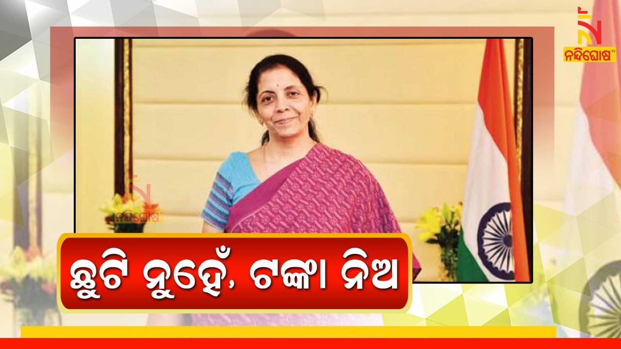 ନୂଆଦିଲ୍ଲୀ  : କୌଣସି କର୍ମସଂସ୍ଥାନରେ ସାପ୍ତାହିକ ଛୁଟି ବ୍ୟତୀତ ଅନ୍ୟାନ୍ୟ ଛୁଟି ନେବାକୁ ସମସ୍ତେ ଭଲ ପାଇଥାଆନ୍ତି । ହେଲେ କେନ୍ଦ୍ର ସରକାର ଏବେ ଏହି ଛୁଟିର ସ୍ୱରୂପ ପରିବର୍ତ୍ତନ କରିବାକୁ ଚାହାନ୍ତି । ଏହି ଛୁଟି ବଦଳରେ ମିଳିବ ଭାଉଚର । ଆଉ ଏହି ଭାଉଚର ଜରିଆରେ କର୍ମଚାରୀମାନେ ବଜାରରୁ କ୍ରୟ କରିପାରିବେ ବିଭିନ୍ନ ସାମଗ୍ରୀ । ଆଉ ଏହି କ୍ରୟ-ବିକ୍ରୟ ପ୍ରକ୍ରିୟା ବଜାରକୁ କରିବ ସକ୍ରିୟ । ଏପରି ଏକ ଅଭିନବ ପ୍ରୟାସ ନେଇ ସୂଚନା ଦେଇଛନ୍ତି ଅର୍ଥମନ୍ତ୍ରୀ ନିର୍ମଳା ସୀତାରମଣ ।