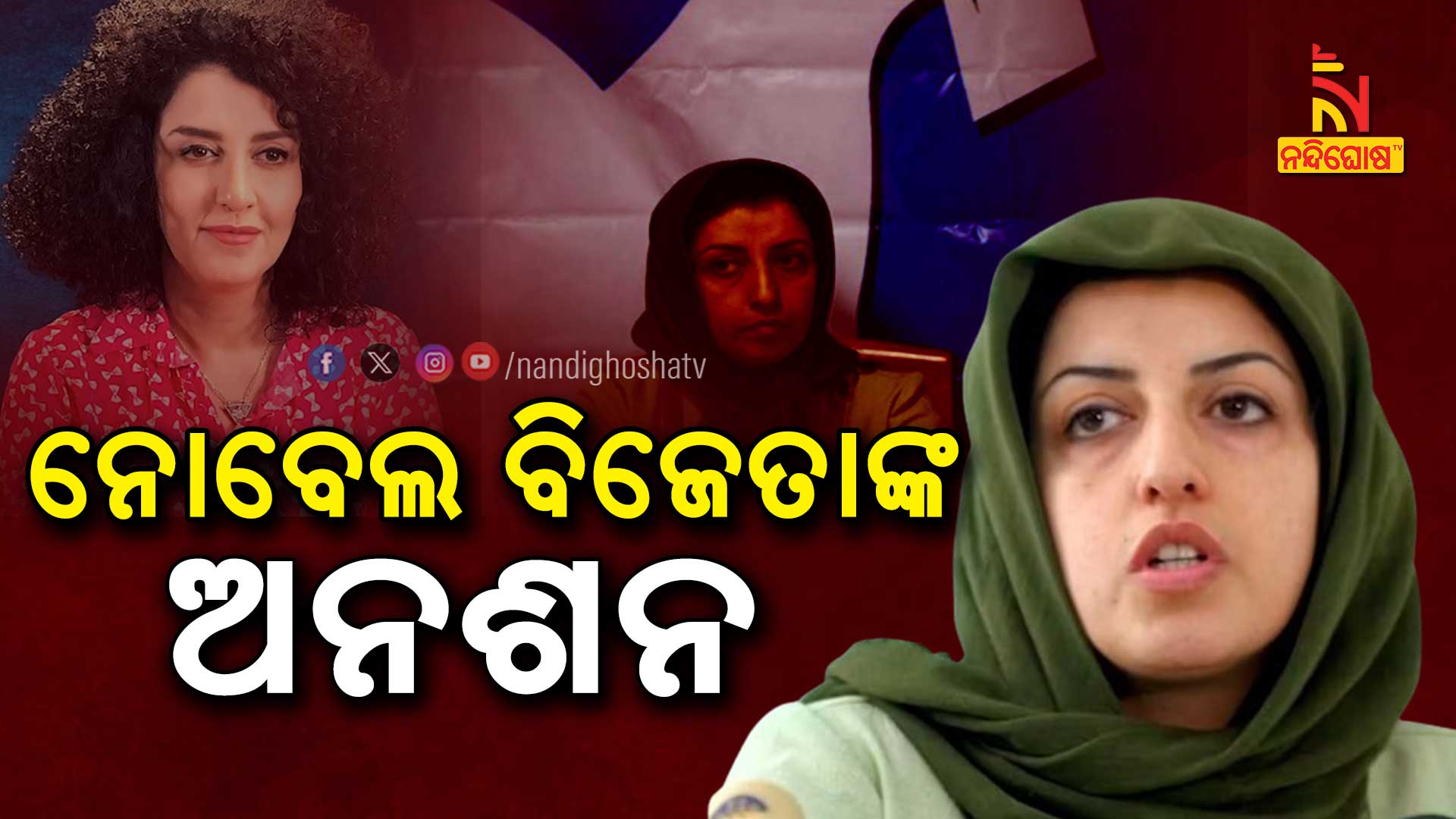 ନୂଆଦିଲ୍ଲୀ: ଇରାନର କାରାଗାରରେ ବନ୍ଦୀ ଥିବା ନୋବେଲ ଶାନ୍ତି ବିଜେତା ନର୍ଗିସ ମହମ୍ମଦିଙ୍କ ଅନଶନ । ଓସଲୋରେ ନୋବେଲ ପୁରସ୍କାର ପ୍ରଦାନ ଉତ୍ସବ କାର୍ଯ୍ୟକ୍ରମ ଥିବାବେଳେ ସେ ଯୋଗଦେଇପାରିବେ ନାହିଁ । ଇରାନରେ ହିଜାବ ଓ ମୃତ୍ୟୁଦଣ୍ଡାଦେଶ ବିରୋଧରେ ସଂଗ୍ରାମ କରି ଶାସକଙ୍କ ରୋଷର ଶିକାର ହୋଇ ବନ୍ଦୀ ରହିଛନ୍ତି ମହମ୍ମଦି ।