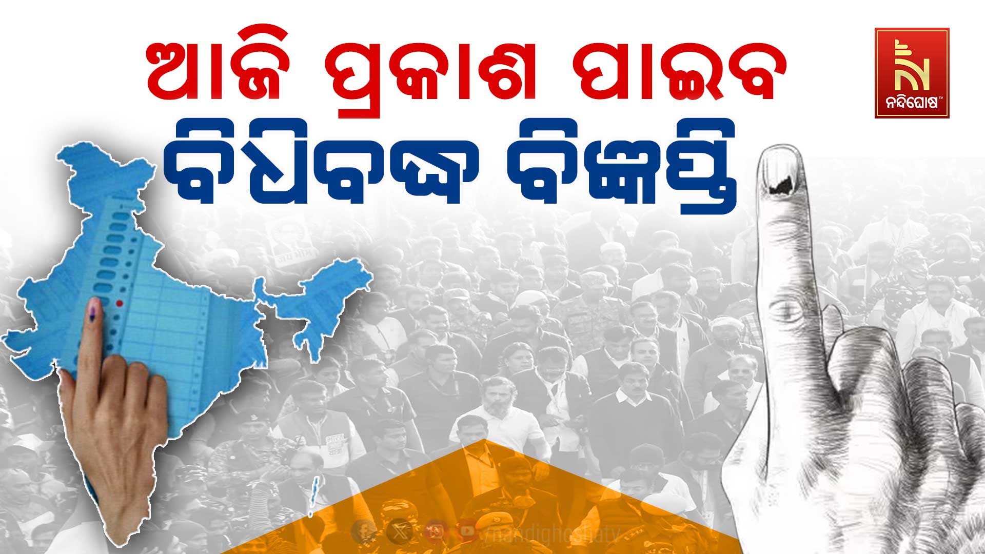 ନୂଆଦିଲ୍ଲୀ: ଦେଶରେ ନିର୍ବାଚନ ମହାସମର। ୭ଟି ପର୍ଯ୍ୟାୟରେ ଲୋକସଭା ନିର୍ବାଚନ ହେବାକୁ ଥିବାବେଳେ ପ୍ରଥମ ପର୍ଯ୍ୟାୟ ନିର୍ବାଚନ ପାଇଁ ଆଜି ପ୍ରକାଶ ପାଇବ ବିଧିବଦ୍ଧ ବିଜ୍ଞପ୍ତି। ଆଜିଠୁ ୨୭ ତାରିଖ ପର୍ଯ୍ୟନ୍ତ ପ୍ରଥମ ପର୍ଯ୍ୟାୟ ନିର୍ବାଚନ ପାଇଁ ପ୍ରାର୍ଥୀମାନେ ନାମାଙ୍କନ ଦାଖଲ କରିପାରିବେ। ଏହାପରେ ୨୮ ତାରିଖରେ ପ୍ରାର୍ଥୀପତ୍ର ଯାଞ୍ଚ ହୋଇ ଚୂଡ଼ାନ୍ତ ପ୍ରାର୍ଥୀ ତାଲିକା ପ୍ରକାଶ ପାଇବ। ପରେ ୩୦ ମାର୍ଚ୍ଚ ପ୍ରାର୍ଥୀପତ୍ର ପ୍ରତ୍ଯାହାରର ଶେଷ ତାରିଖ ରହିଛି। ୧୯ ଏପ୍ରିଲରେ ଭୋଟ ହୋଇ ୪ ଜୁନରେ ଫଳାଫଳ ପ୍ରକାଶ ପାଇବ।