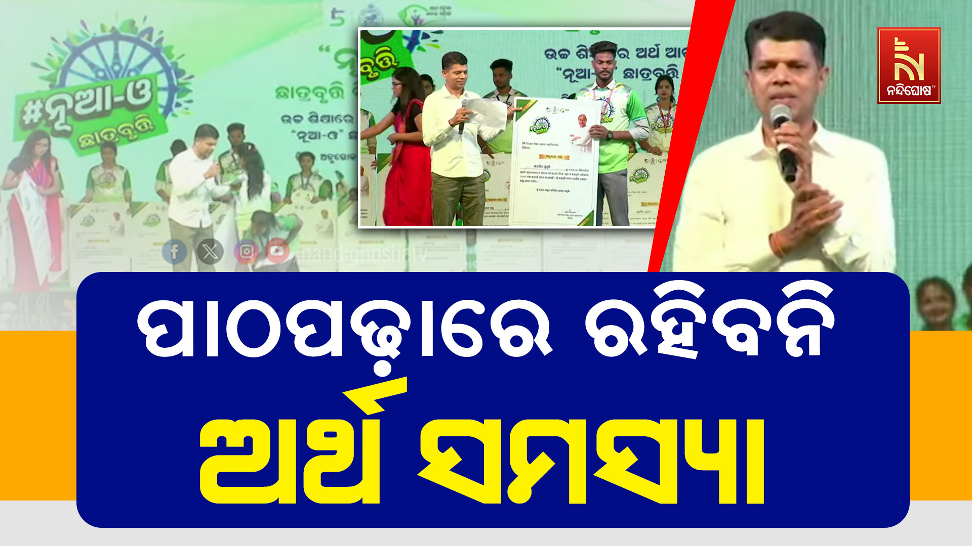 ନନ୍ଦିଘୋଷ ବ୍ୟୁରୋ: ବଢିଲା ସାହାସ, ମିଳିଲା ଶକ୍ତି। ଯୁକ୍ତ ୩ ଏବଂ ପିଜି ଛାତ୍ରଛାତ୍ରୀଙ୍କୁ ପ୍ରଦାନ କରାଯାଉଛି ନୂଆ-ଓ ସ୍କଲାରସିପ। ଏହି ସ୍କିମରେ ରାଜ୍ଯର ପ୍ରାୟ ୬ ଲକ୍ଷ ଛାତ୍ରଛାତ୍ରୀ ଉପକୃତ ହେବେ। ଆଜି ଧର୍ମଗଡ଼, ଟିଟିଲାଗଡ଼ ଓ ବରଗଡ଼ରେ ଉଛାତ୍ରଛାତ୍ରୀଙ୍କ ନୂଆ-ଓ ସ୍କଲାରସିପ୍ ସାର୍ଟିଫିକେଟ୍ ପ୍ରଦାନ କରିବେ 5T ଅଧ୍ୟକ୍ଷ। ଛାତ୍ରୀଙ୍କୁ ୧୦ ହଜାର ଏବଂ ଛାତ୍ରଙ୍କ ଖାତାକୁ ୯ ହଜାର ଟଙ୍କା ପ୍ରଦାନ କରାଯିବ। ଛାତ୍ରଛାତ୍ରୀଙ୍କ ଲାଗି ଆଉ ପାଠ ପଢାରେ ରହିବନି ଅର୍ଥର ଅଭାବ। ବାପାମାଆଙ୍କ ଉପରେ ଯାହା ବୋଝ ପଡୁଥିଲା ସେଇଟାକୁ କିଛିମାତ୍ରାରେ କମ କରିବା ଲାଗି ମୁଖ୍ୟମନ୍ତ୍ରୀ ଏହି ଛାତ୍ରବୃତ୍ତି ପ୍ରଦାନ କରୁଛନ୍ତି। ଯୁକ୍ତ ୩ ଏବଂ ପିଜିର ୬ ଲକ୍ଷ ଛାତ୍ରଛାତ୍ରୀ ଏହାଦ୍ଵାରା ଉପକୃତ ହେବେ। ଏହି ଯୋଜନା ନୂଆ ଓଡ଼ିଶା ଗଠନରେ ଗୁରୁତ୍ଵପୂର୍ଣ୍ଣ ଭୂମିକା ନେବ। ୨୦୩୬ ସୁଦ୍ଧା ନୂଆ ଓ ସଶକ୍ତ ଓଡ଼ିଶା ଗଠନ ଲକ୍ଷ୍ଯ ରଖିଛନ୍ତି ସରକାର। ଏଥିଲାଗି ରାଜ୍ୟ ପ୍ରଶାସନକୁ ୨୦୩୪ ପର୍ଯ୍ୟନ୍ତ ମୁଖ୍ୟମନ୍ତ୍ରୀ ଟାର୍ଗେଟ ଦେଇଛନ୍ତି। ୧୦ ବର୍ଷରେ ଓଡ଼ିଶାକୁ ସବୁ ଦିଗରୁ ସଶକ୍ତ କରିବାକୁ ଲକ୍ଷ୍ଯ ରହିଛି। ଲକ୍ଷ୍ୟ ହାସଲରେ ଯୁବକଙ୍କ ଭୂମିକା ହେବ ଗୁରୁତ୍ବପୂର୍ଣ୍ଣ। ରାଜ୍ଯ ବଜେଟର ଏକ ବଡ଼ ଭାଗ ଯୁବ ବଜେଟ ପାଇଁ ବିନିଯୋଗ ହେବ। ଯୁବକଙ୍କ ସବୁ ସ୍ବପ୍ନକୁ ସାକାର କରିବେ ରାଜ୍ୟ ସରକାର। ଯୁବ ଶକ୍ତିକୁ ସାମର୍ଥ୍ୟ ଯୋଗାଇବାକୁ ଏବେଠୁ କାମ ଆରମ୍ଭ ହୋଇଛି। ରାଜ୍ୟର ୬ହଜାର ୮୫୦ ହାଇସ୍କୁଲର ହୋଇଛି ରୂପାନ୍ତରୀକରଣ। ଯୁବକ ଯାହା ସ୍ଵପ୍ନ ଦେଖିବ, ତାକୁ ସାକାର କରିପାରିବ ।