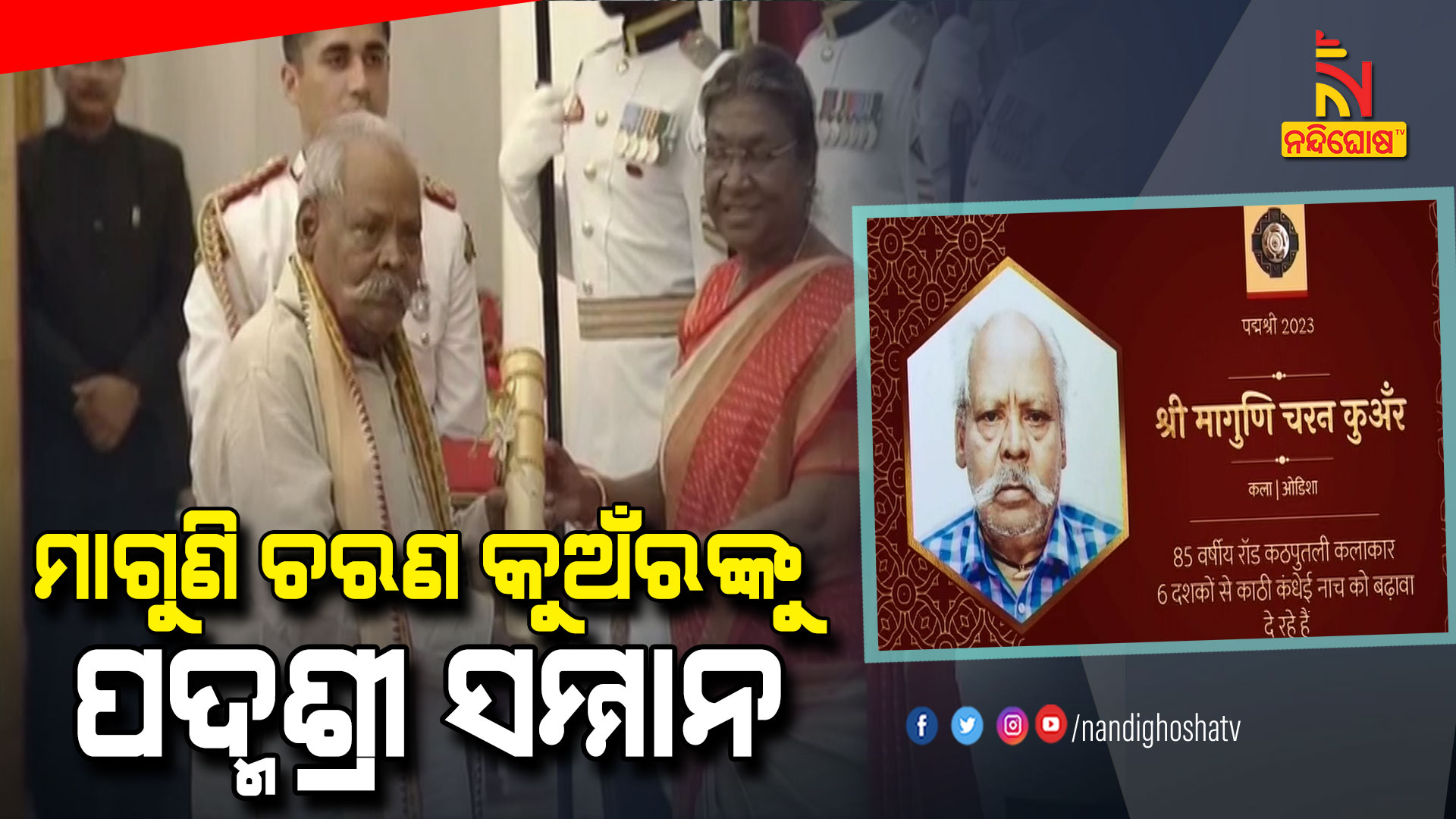 ନୂଆଦିଲ୍ଲୀ: କେନ୍ଦୁଝରର ବିଶିଷ୍ଟ କାଠି କଣ୍ଢେଇ କାରିଗର ମାଗୁଣି ଚରଣ କୁଅଁରଙ୍କୁ ମିଳିଲା ପଦ୍ମଶ୍ରୀ ସମ୍ମାନ । ରାଷ୍ଟ୍ରପତି ଭବନରେ ସମ୍ମାନ ପ୍ରଦାନ କରିଛନ୍ତି ରାଷ୍ଟ୍ରପତି ଦ୍ରୌପଦୀ ମୁର୍ମୁ । ମାଗୁଣି ଚରଣ କୁଅଁର ଏକାଧାରରେ ଜଣେ କାଠି କଣ୍ଢେଇ ଶିଳ୍ପୀ, କାଠ, ମାଟି, ପଥର ଓ ସିମେଣ୍ଟର ନିଖୁଣ ମୂର୍ତ୍ତି କାରିଗର । ବିଗତ 70ବର୍ଷ ହେବ ସେ ନିଜ ସାଧନା ଜାରି ରଖିଥିବା ବେଳେ, 86ବର୍ଷ ବୟସରେ ତାଙ୍କୁ ପଦ୍ମଶ୍ରୀ ସମ୍ମାନରେ ସମ୍ମାନିତ କରାଯାଇଛି । କେନ୍ଦୁଝର ପୁରୁଣା ସହରର ବୈଦ୍ୟରାଜ ସାହିର ମାଗୁଣି ଚରଣ କୁଅଁର ।