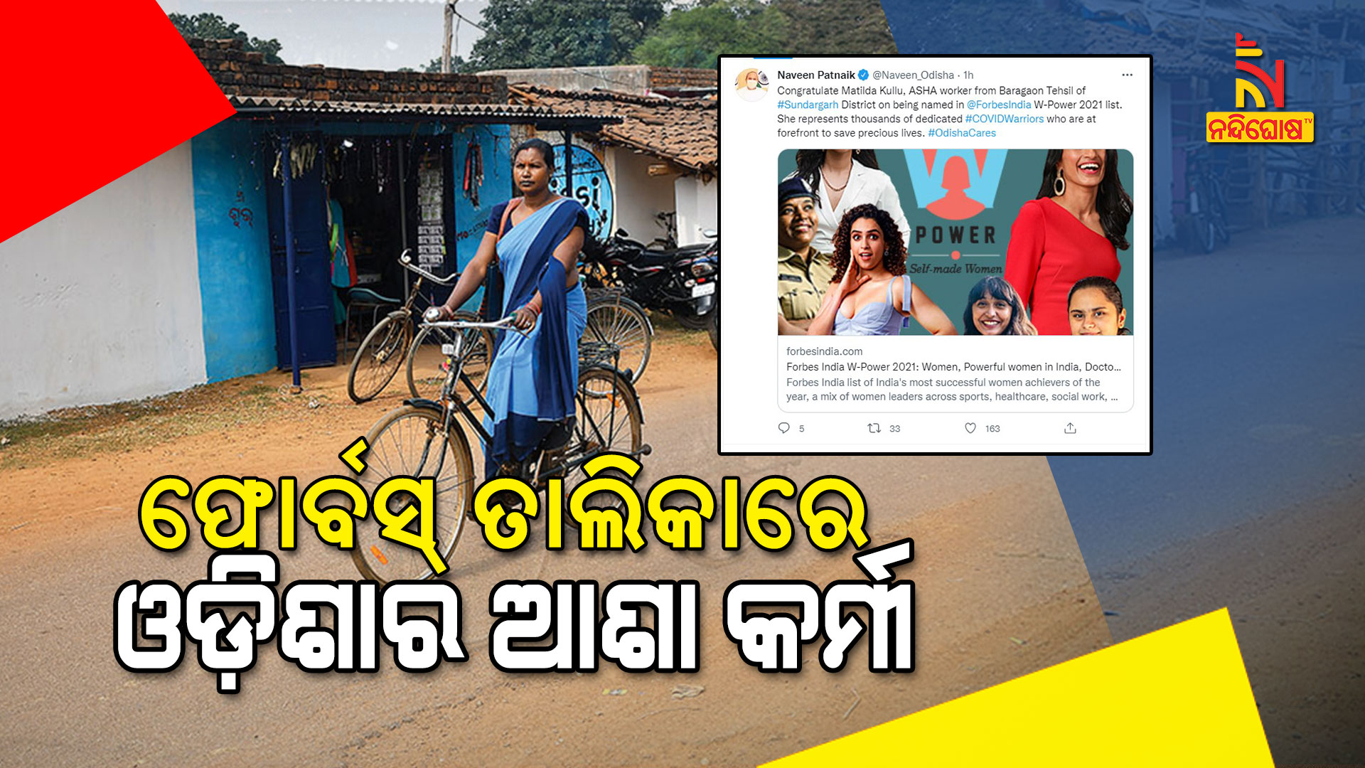 ଭୁବନେଶ୍ୱର: ଫୋର୍ବସ ଇଣ୍ଡିଆ ପକ୍ଷରୁ ୨୦୨୧ ବର୍ଷ ପାଇଁ ପ୍ରକାଶ ପାଇଛି ପାଓ୍ୱାରଫୁଲ ଓ୍ୱିମେନ୍‌ଙ୍କ ତାଲିକା । ଆଉ ଏଥିରେ ସ୍ଥାନ ପାଇଛନ୍ତି ସୁନ୍ଦରଗଡ଼ ଜିଲ୍ଲାର ଆଶା ଦିଦି ମାତିଲଦା କୁଲ୍ଲୁ । ଯାହାଙ୍କୁ ଶୁଭେଚ୍ଛା ଜଣାଇଛନ୍ତି ମୁଖ୍ୟମନ୍ତ୍ରୀ ନବୀନ ପଟ୍ଟନାୟକ । ଟ୍ୱିଟ୍ ଯୋଗେ ମୁଖ୍ୟମନ୍ତ୍ରୀ ତାଙ୍କୁ ଶୁଭେଚ୍ଛା ଜଣାଇବା ସହ, ସେ କୋଭିଡ ଯୁଦ୍ଧରେ ସମର୍ପିତ ହଜାର ହଜାର କୋଭିଡ ଯୋଦ୍ଧାଙ୍କ ପ୍ରତୀକ । ଯେଉଁମାନେ ବହୁ ମୂଲ୍ୟ ଜୀବନ ସୁରକ୍ଷା ଦାୟିତ୍ୱରେ ନିୟୋଜିତ ବୋଲି ଲେଖିଛନ୍ତି । ସୁନ୍ଦରଗଡ଼ ଜିଲ୍ଲାର ବାରାଗାଁ ତହସିଲ ଅନ୍ତର୍ଗତ ଗୋରଗାଡ଼ବାହାଲ ଗାଁର ମହିଳା ମାତିଲଦା କୁଲ୍ଲୁ ଆଶା ଦିଦି ଭାବେ କାର୍ଯ୍ୟ କରୁଛନ୍ତି ।  ସେ ସ୍ୱାସ୍ଥ୍ୟସେବା ବ୍ୟବସ୍ଥାକୁ ଲୋକଙ୍କ ନିକଟତର କରିବାରେ ପ୍ରମୁଖ ଭୂମିକା ଗ୍ରହଣ କରିଛନ୍ତି । ଫୋର୍ବସ ଇଣ୍ଡିଆ ରିପୋର୍ଟ ଅନୁଯାୟୀ ସେ ସକାଳ ୫ ଟାରୁ ଘରୁ ଉଠି ନିଜ ଘରର ସମସ୍ତ କାମ ଶେଷ କରି ପ୍ରତିଟି ଲୋକଙ୍କ ପାଖକୁ ପହଞ୍ଚନ୍ତି । ସ୍ୱାସ୍ଥ୍ୟ ସେବା ବିଷୟରେ ଲୋକଙ୍କୁ ସଚେତନ କରନ୍ତି ।