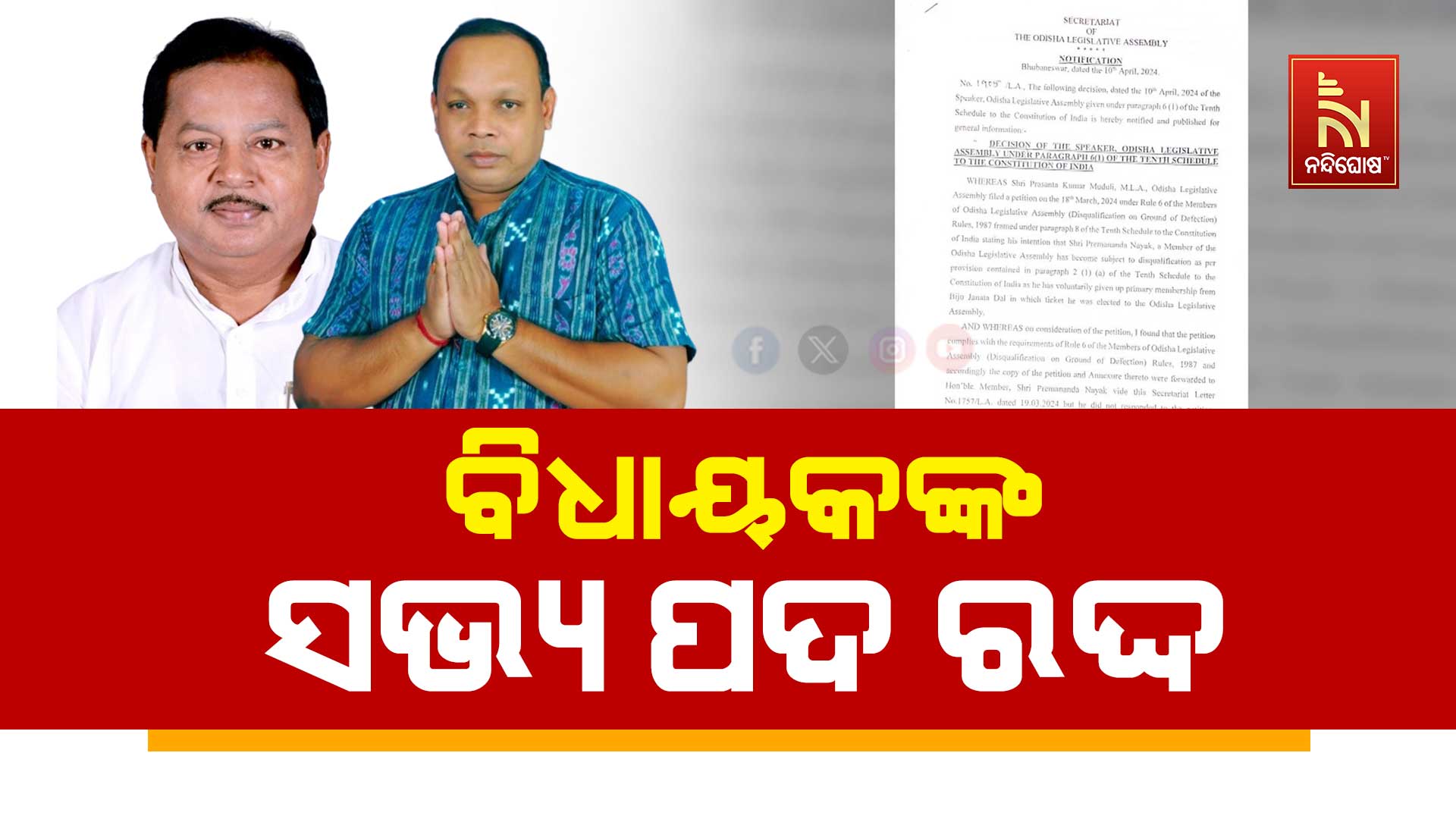 ଭୁବନେଶ୍ୱର: ଅରବିନ୍ଦ ଢାଲି ଓ ପ୍ରେମାନନ୍ଦ ନାୟକଙ୍କ ରଦ୍ଦ ହେଲା ସଭ୍ୟ ପଦ। ବିଧାନସଭା ସଚିବାଳୟ ପକ୍ଷରୁ ପ୍ରକାଶ ପାଇଛି ନିର୍ଦ୍ଦେଶାବଳୀ। ଦୁଇ ବିଧାୟକଙ୍କ ବିରୋଧରେ ମାର୍ଚ୍ଚ ୧୮ରେ ବାଚସ୍ପତିଙ୍କ ନିକଟରେ ପିଟିସନ ଦାଖଲ କରିଥିଲେ ସରକାରୀ ମୁଖ୍ୟ ସଚେତକ ପ୍ରଶାନ୍ତ ମୁଦୁଲି। ପିଟିସନ ଆଧାରରେ ମାର୍ଚ୍ଚ ୧୯ରେ ଦୁଇ ବିଧାୟକଙ୍କୁ ମଗାଯାଇଥିଲା ସ୍ପଷ୍ଟୀକରଣ।
