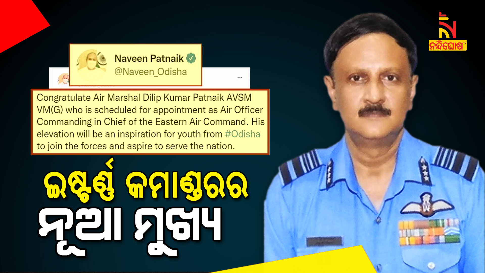 ନୂଆଦିଲ୍ଲୀ: ଓଡ଼ିଆ ବାୟୁସେନା ଅଧିକାରୀ ଦିଲ୍ଲୀପ କୁମାର ପଟ୍ଟନାୟକଙ୍କୁ ମିଳିଲା ବଡ଼ ଦାୟିତ୍ବ । ଇଷ୍ଟର୍ଣ୍ଣ ଏୟାର କମାଣ୍ଡରେ ଏୟାର ଅଫିସର କମ୍ପାଣ୍ଡିଂ ଇନ୍‌ ଚିଫ୍‌ ଭାବେ ମିଳିଲା ନିଯୁକ୍ତି । ପ୍ରଥମ ଓଡ଼ିଆ ଭାବେ ଏୟାର ମାର୍ଶାଲ ଦିଲ୍ଲୀପଙ୍କୁ ଏହି ଦାୟିତ୍ବ ମିଳିଛି । କାରଗିଲ୍‌ ଯୁଦ୍ଧରେ ଅପୂର୍ବ ସାହାସିକତା ଦେଖାଇଥିବାରୁ ତାଙ୍କୁ ବାୟୁସେନା ମେଡାଲ ମିଳିଥିଲା ।
