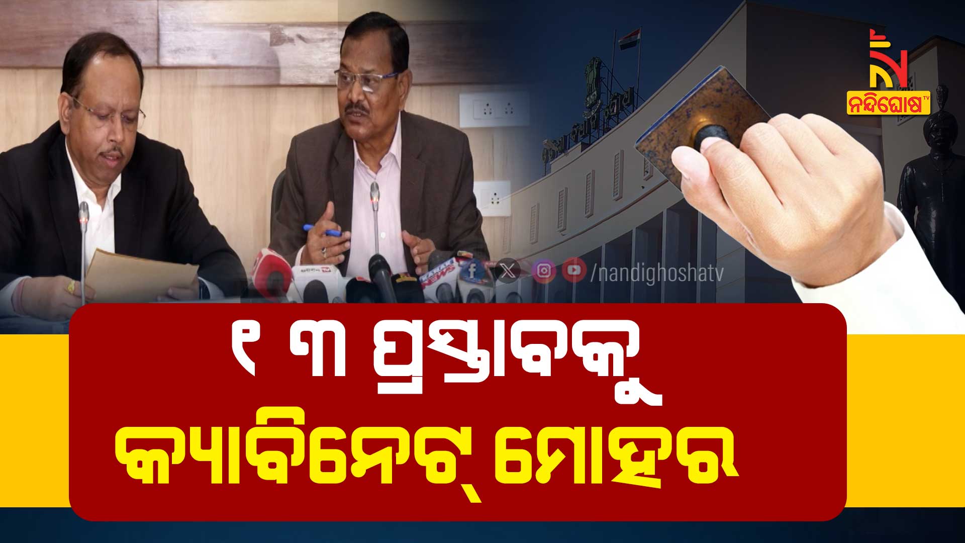 ଭୁବନେଶ୍ବର: ରାଜ୍ୟ କ୍ୟାବିନେଟର ଗୁରୁତ୍ବପୂର୍ଣ୍ଣ ବୈଠକ । ୧୦ ବିଭାଗର ୧୩ ପ୍ରସ୍ତାବରେ ବାଜିଲା କ୍ୟାବିନେଟ ମୋହର । ୧୩ଟି ପ୍ରସ୍ତାବରେ ରହିଛି ୬ଟି ସେବା ସମ୍ବନ୍ଧୀୟ ପ୍ରସ୍ତାବକୁ ମିଳିଛି ଅନୁମୋଦନ ।