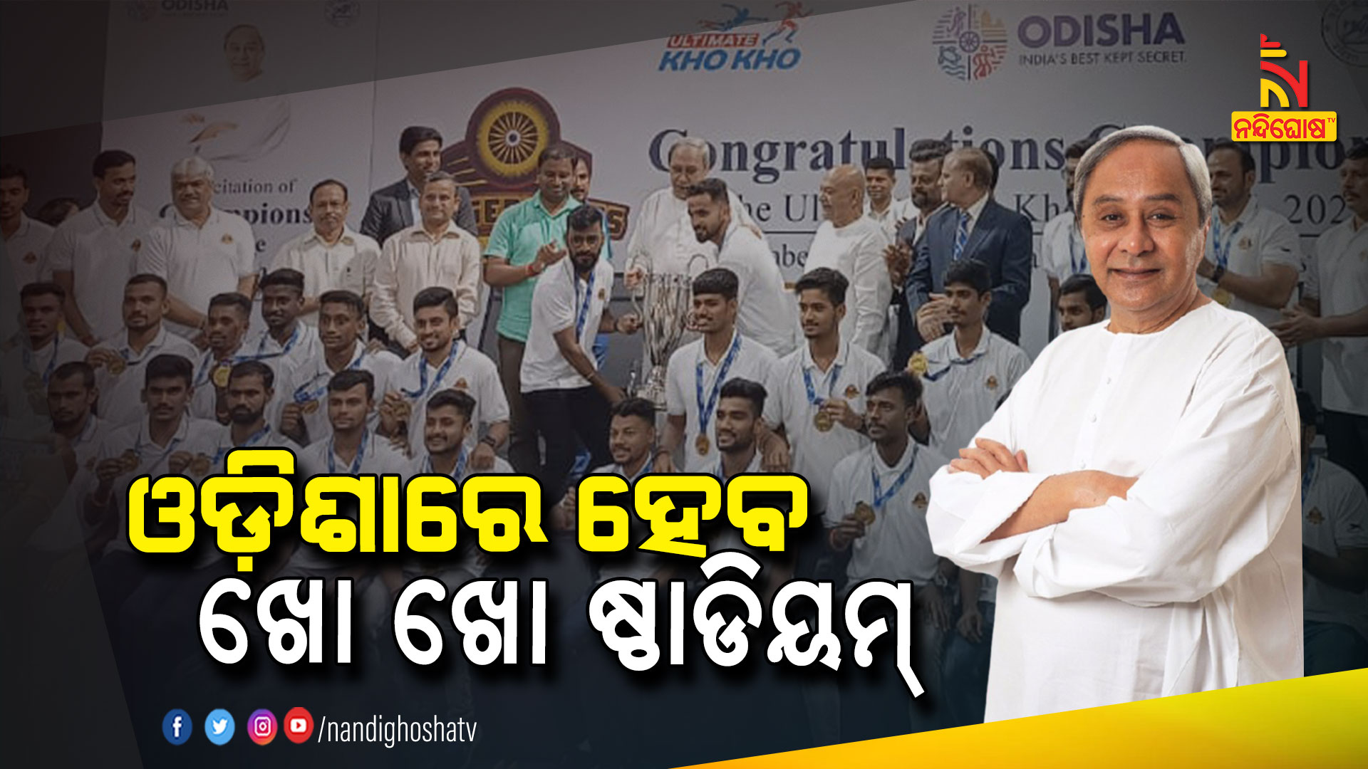 ଭୁବନେଶ୍ୱର: ଭୁବନେଶ୍ୱର: ଓଡ଼ିଶାରେ ନିର୍ମାଣ ହେବ ଖୋ ଖୋ ଷ୍ଟାଡିୟମ ଓ ହାଇପରଫର୍ମାନ୍ସ ସେଣ୍ଟର। ଅଲଟିମେଟ୍ ଖୋ ଖୋ ଲିଗ୍ ଚାମ୍ପିଅନ ‘ଓଡ଼ିଶା ଜଗରନଟ୍ସ’କୁ ସମ୍ବର୍ଦ୍ଧିତ କରି ଏହି ଘୋଷଣା କରିଛନ୍ତି ମୁଖ୍ୟମନ୍ତ୍ରୀ ନବୀନ ପଟ୍ଟନାୟକ। କଳିଙ୍ଗ ଷ୍ଟାଡିୟମରେ ଚାମ୍ପିଅନ ଟିମକୁ ସମ୍ବର୍ଦ୍ଧିତ କରିଛନ୍ତି ନବୀନ । ଏହି ସମୟରେ ପୂର୍ବରୁ ଘୋଷଣା କରିଥିବା ଏକ କୋଟି ଟଙ୍କା ପୁରସ୍କାର ରାଶି ପ୍ରଦାନ କରିଛନ୍ତି ମୁଖ୍ୟମନ୍ତ୍ରୀ । ଖେଳାଳିଙ୍କ ସହିତ ଟିମର ମ୍ୟାନେଜର ଓ ସପୋର୍ଟ ଷ୍ଟାଫଙ୍କୁ ପୁରସ୍କୃତ କରିଛନ୍ତି ମୁଖ୍ୟମନ୍ତ୍ରୀ । ପରେ ସମସ୍ତଙ୍କ ଆଲୋଚନା କରିବା ସହ ଫଟୋ ଉଠାଇଛନ୍ତି ନବୀନ। ଆଗକୁ ଭଲ ଖେଳି ରାଜ୍ୟ ପାଇଁ ଗୌରବ ଆଣିବାକୁ ସେ ପରାମର୍ଶ ଦେଇଛନ୍ତି । ଏଥିପାଇଁ ସମସ୍ତ ସହଯୋଗ ଯୋଗାଇ ଦେବେ ରାଜ୍ୟ ସରକାର ।
