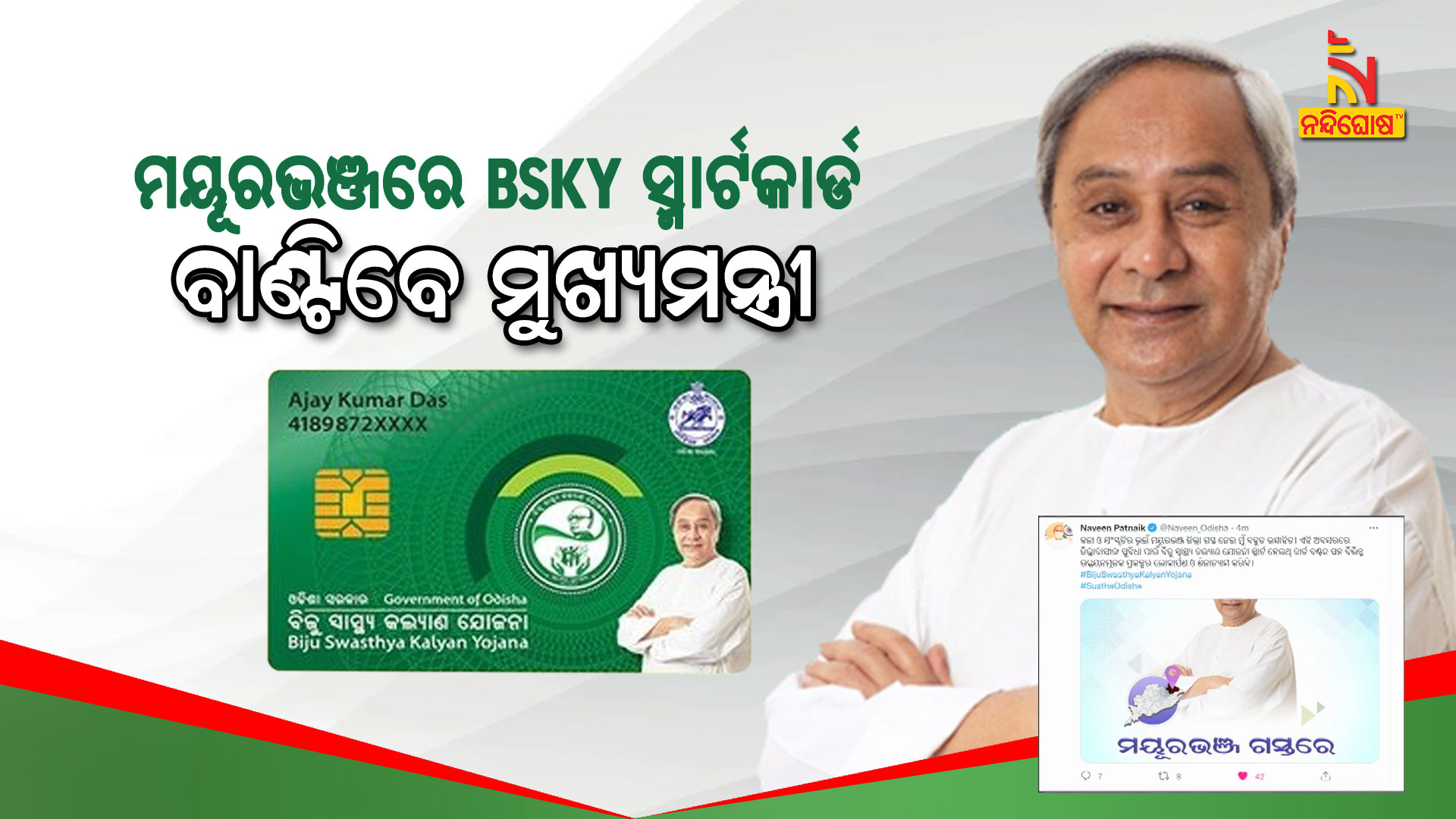 ମୟୂରଭଞ୍ଜ: ମୟୂରଭଞ୍ଜରେ ଆଜିଠୁ ଆରମ୍ଭ ହେବ ସ୍ମାର୍ଟ ସ୍ୱାସ୍ଥ୍ୟସେବା। ଆଜି ମୟୂରଭଞ୍ଜ ଗସ୍ତ କରି ବିଏସକେଓ୍ୱାଇ ସ୍ମାର୍ଟକାର୍ଡ ବଣ୍ଟନ କରିବେ ମୁଖ୍ୟମନ୍ତ୍ରୀ ନବୀନ ପଟ୍ଟନାୟକ। ବିଜୁ ସ୍ୱାସ୍ଥ୍ୟ କାର୍ଡ ବାଣ୍ଟିବା ସହ ବିଭିନ୍ନ ପ୍ରକଳ୍ପର ଶୁଭାରମ୍ଭ ଓ ଉଦଘାଟନ କରିବାର କାର୍ଯ୍ୟକ୍ରମ ରହିଛି। ଭୁବନେଶ୍ୱରରୁ ହେଲିକପ୍ଟର ଯୋଗେ ଯାଇ ବାରିପଦାର କଲେଜ ପଡିଆରେ ପୂର୍ବାହ୍ନ ୧୧ଟାରେ ପହଞ୍ଚିବେ ମୁଖ୍ୟମନ୍ତ୍ରୀ। ସେଠାରେ ପହଞ୍ଚିବା ପରେ ଶହୀଦ ସ୍ମୃତିଭବନ ପରିସରରେ ହିତାଧିକାରୀଙ୍କୁ ମୁଖ୍ୟମନ୍ତ୍ରୀ ବିଜୁ ସ୍ଵାସ୍ଥ୍ୟ କଲ୍ୟାଣ ଯୋଜନାର ସ୍ମାର୍ଟ କାର୍ଡ ବଣ୍ଟନ କରିବେ।