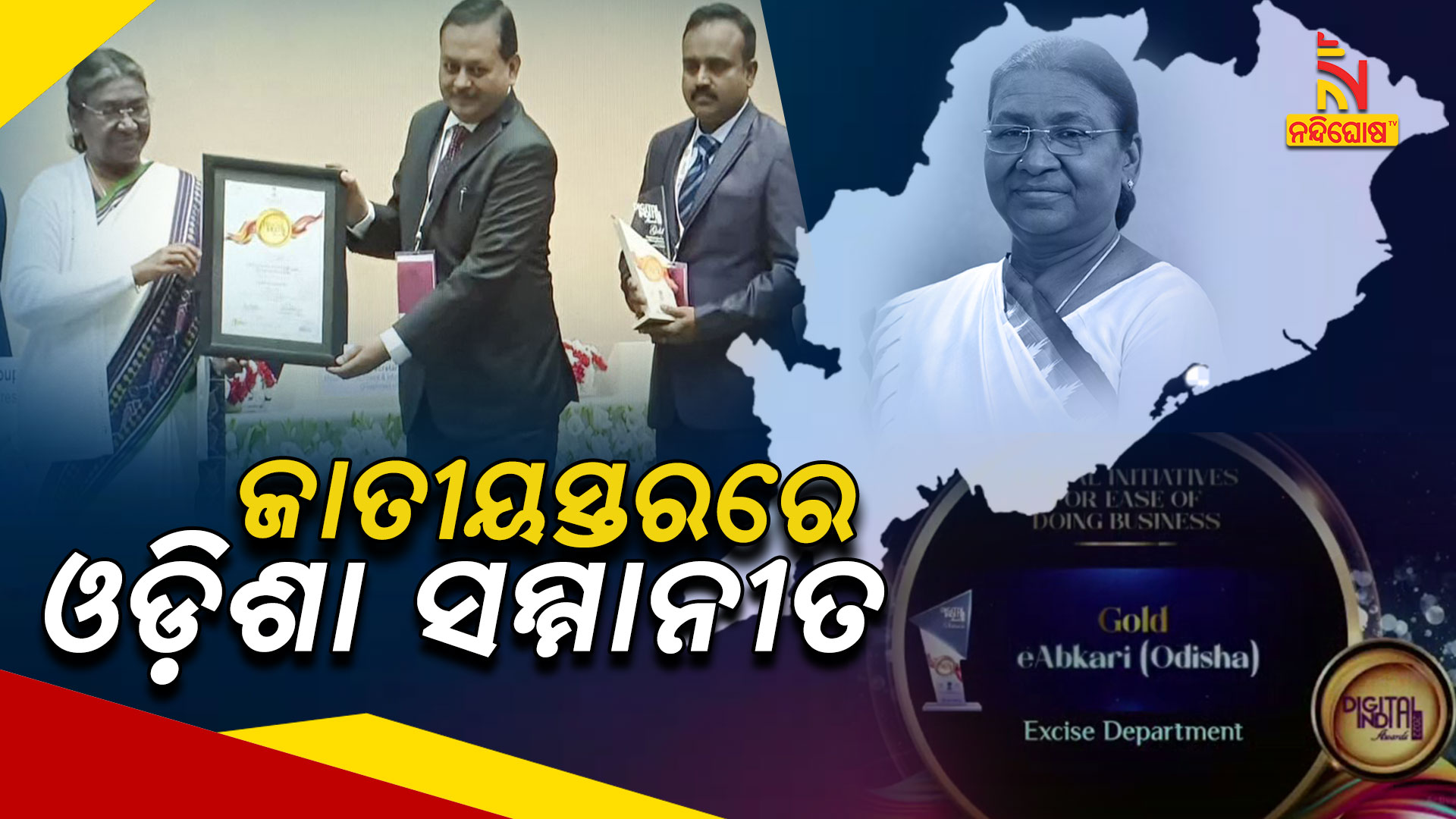 ନୂଆଦିଲ୍ଲୀ: ପୁଣି ଜାତୀୟସ୍ତରରେ ସମ୍ମାନିତ ହେଲା ଓଡ଼ିଶା । ରାଜ୍ୟ ସରକାରଙ୍କ ଇ- ଅବକାରୀକୁ ମିଳିଲା ‘ଡିଜିଟାଲ୍ ଇଣ୍ଡିଆ ସ୍ବର୍ଣ୍ଣ ପୁରସ୍କାର’ । ଦିଲ୍ଲୀ ବିଜ୍ଞାନ ଭବନରେ ଆୟୋଜିତ ଏକ ସ୍ବତନ୍ତ୍ର କାର୍ଯ୍ୟକ୍ରମରେ ରାଷ୍ଟ୍ରପତି ଦ୍ରୌପଦୀ ମୁର୍ମୁ ଆଜି ଏହି ପୁରସ୍କାର ପ୍ରଦାନ କରିଛନ୍ତି । ‘ ଡିଜିଟାଲ୍ ଇନିସିଏଟିଭ୍ ଫର୍ ଇଜ୍ ଅଫ୍ ଡୁଇଂ ବିଜିନେସ୍’ ବର୍ଗରେ ଓଡ଼ିଶାକୁ ଏହି ସମ୍ମାନଜନକ ପୁରସ୍କାର ମିଳିଛି । ସ୍ବଚ୍ଛତା ଓ ସମୟାନୁବର୍ତ୍ତିତା ସମେତ ନିରବଚ୍ଛିନ୍ନ ଅନ୍ଲାଇନ୍ ସେବା ଯୋଗାଇ ଦେବା କ୍ଷେତ୍ରରେ ଉଲ୍ଲେଖନୀୟ କାର୍ଯ୍ୟ ପାଇଁ ଏହି ପୁରସ୍କାର ପାଇଛି ରାଜ୍ୟ ଅବକାରୀ ବିଭାଗଲ।