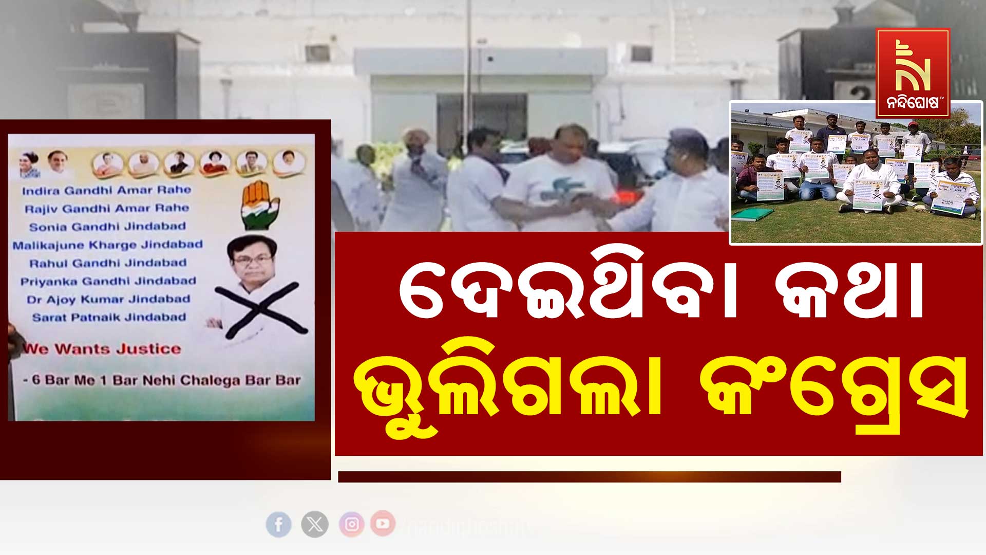 ଭୁବନେଶ୍ୱର: ନିଜେ ଦେଇଥିବା ପ୍ରତିଶ୍ରୁତି ନିଜେ ଭୁଲି ଯାଉଛି କଂଗ୍ରେସ । ଓ୍ବାନ ଫେମିଲି ଓ୍ବାନ ଟିକେଟ, କଂଗ୍ରେସର ମାନଦଣ୍ଡ ଥିବା ବେଳେ କଳାହାଣ୍ଡିରେ ଏହାର ବ୍ୟତିକ୍ରମ ଦେଖବାକୁ ମିଳିଥିବା ଅଭିଯୋଗ ହୋଇଛି । ଏନେଇ ନୂଆ ଦିଲ୍ଲୀ ଏଆଇସିସି ମୁଖ୍ୟ କାର୍ଯ୍ୟାଳୟରେ କଳାହାଣ୍ଡି ଜିଲ୍ଲା ଆଶାୟୀ ଧାରଣା ଦେଇଛନ୍ତି । `ଓ୍ବି ଓ୍ବାଣ୍ଟ ଜଷ୍ଟିସ’ ନାରାରେ କଂଗ୍ରେସ ଭବନରେ ବିରୋଧ କରିଛନ୍ତି ଆଶାୟୀ ।