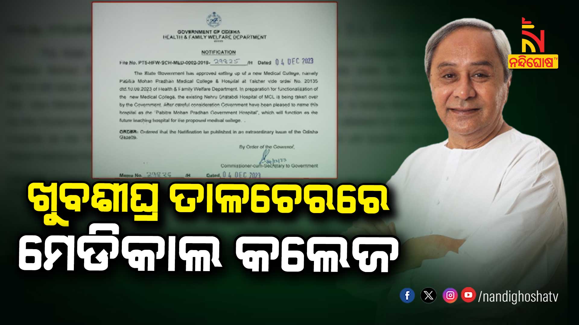 ତାଳଚେର: ଓଡ଼ିଶାରେ ସମୃଦ୍ଧ ସ୍ବାସ୍ଥ୍ୟସେବାର ଆଉ ଏକ ଅଧ୍ୟାୟ । ଅନୁଗୁଳ ଜିଲ୍ଲା ତାଳଚେରରେ ପ୍ରତିଷ୍ଠା ହେବ ପବିତ୍ର ମୋହନ ପ୍ରଧାନ ମେଡିକାଲ କଲେଜ ଆଣ୍ଡ ହସପିଟାଲ । ଏହାକୁ ରାଜ୍ୟ ସରକାର ମଞ୍ଜୁର କରିଛନ୍ତି । ବର୍ତ୍ତମାନ କାର୍ଯ୍ୟକରୁଥିବା ଏମସିଏଲର ନେହେରୁ ଶତାବ୍ଦି ହସପିଟାଲକୁ ସରକାର ହାତକୁ ନେଇ ଏହାର ନାମ ପରିବର୍ତ୍ତନ କରିଛନ୍ତି । ଏନେଇ ସ୍ବାସ୍ଥ୍ୟ ବିଭାଗ ପକ୍ଷରୁ ବିଜ୍ଞପ୍ତି ପ୍ରକାଶ ପାଇଛି ।