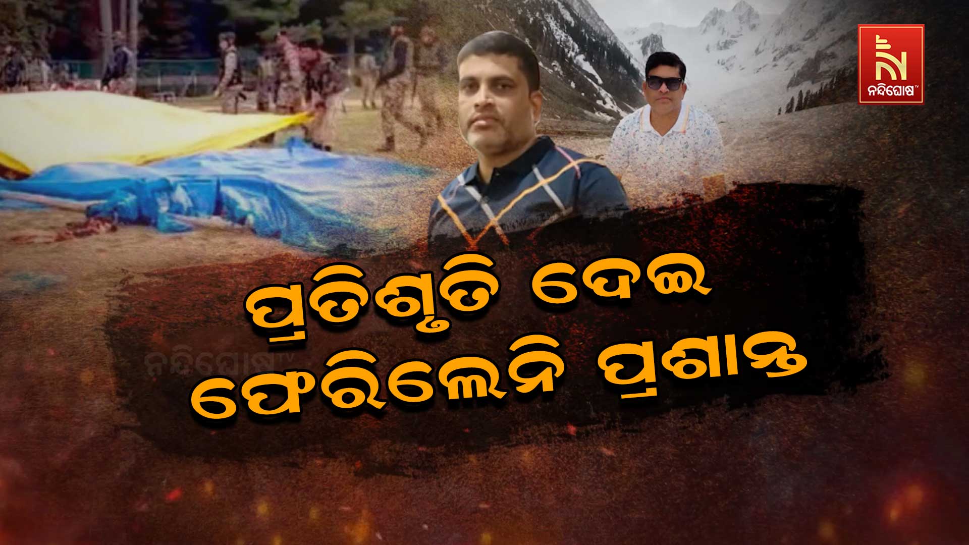 ତିନି ଦିନ ତଳେ ପତ୍ନୀ ଓ ପୁଅ ସହ ପହଲଗାଓଁ ଯାଇଥିଲେ ପ୍ରଶାନ୍ତ। କୋଳାହଳ ପରିବେଶରୁ, ଦୂରେଇ ପ୍ରାକୃତିକ ପରିବେଶର ଘେରା ନଭଶ୍ଚୁମ୍ଭି ପାଇନ ଗଛତଳେ କିଛି ସମୟ ବିତାଇବାକୁ ଚିନ୍ତା କରିଥିଲେ ପ୍ରଶାନ୍ତ। ହେଲେ କିଏ ଜାଣିଥିଲା ଭୂସ୍ବର୍ଗରେ ଲୁଚିଛନ୍ତି ନର ରାକ୍ଷସ । ଆତଙ୍କୀଙ୍କ ବନ୍ଧୁକ ମୁନରୁ ଅଳ୍ପକେ ବତ୍ତି ଯାଇଛନ୍ତି ପ୍ରଶାନ୍ତଙ୍କ ପତ୍ନୀ ଓ ସନ୍ତାନ ।