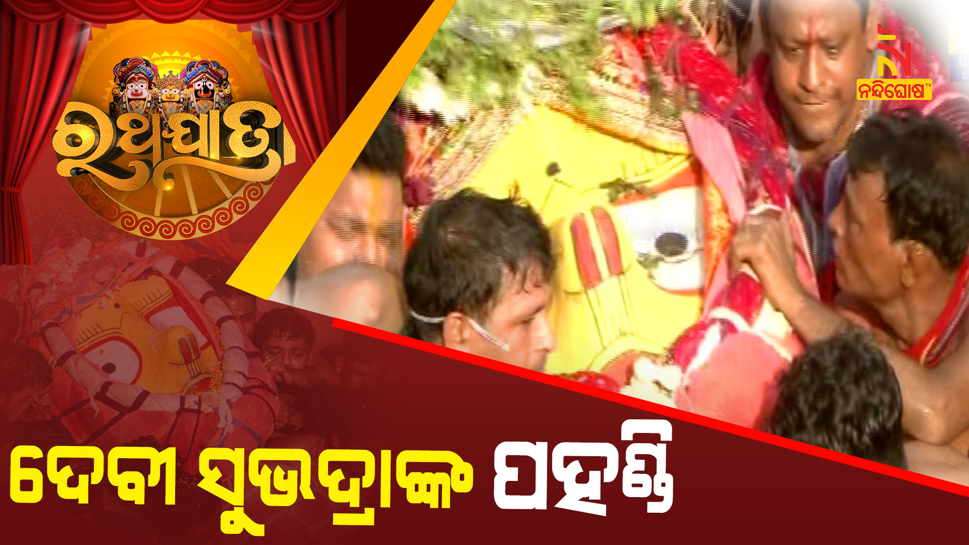 ପୁରୀ: ଆଜି ବିଶ୍ୱ ପ୍ରସିଦ୍ଧ ରଥଯାତ୍ରା । ରଥଯାତ୍ରା ପାଇଁ ଚଳଚଞ୍ଚଳ ଶ୍ରୀକ୍ଷେତ୍ର । ଶ୍ରୀଗୁଣ୍ଡିଚା ଯାତ୍ରା ପାଇଁ ମହାପ୍ରଭୁଙ୍କ ନୀତିକାନ୍ତି ୩ ଘଣ୍ଟା ଆଗୁଆ ଚାଲିଛି । ଯାହାଫଳରେ ସକାଳ ସାଢ଼େ ୬ଟାରୁ ଆରମ୍ଭ ହୋଇଛି ପହଣ୍ଡି । ପ୍ରଥମେ ଚକ୍ରରାଜ, ପରେ ବଡ଼ଭାଇ ପ୍ରଭୁ ଶ୍ରୀବଳଭଦ୍ରଙ୍କ ପହଣ୍ଡି ପରେ ଦେବୀ ସୁଭଦ୍ରାଙ୍କ ପହଣ୍ଡି ବିଜେ ସରିଛି । ଧାଡି ପହଣ୍ଡିରେ ଆସି ଦେବଦଳନ ରଥରେ ବିଜେ କରିଛନ୍ତି ଦେବୀ ସୁଭଦ୍ରା । ସୁଦର୍ଶନ, ବଡ଼ ଭାଇ ବଳଭଦ୍ର ଓ ଦେବୀ ସୁଭଦ୍ରାଙ୍କ ପହଣ୍ଡି ବିଜେ ପରେ ଏବେ ବଡ଼ ଦାଣ୍ଡରେ ଝୁଲିଝୁଲି ରଥକୁ ଆସୁଛନ୍ତି ବଡ଼ ଠାକୁର ।