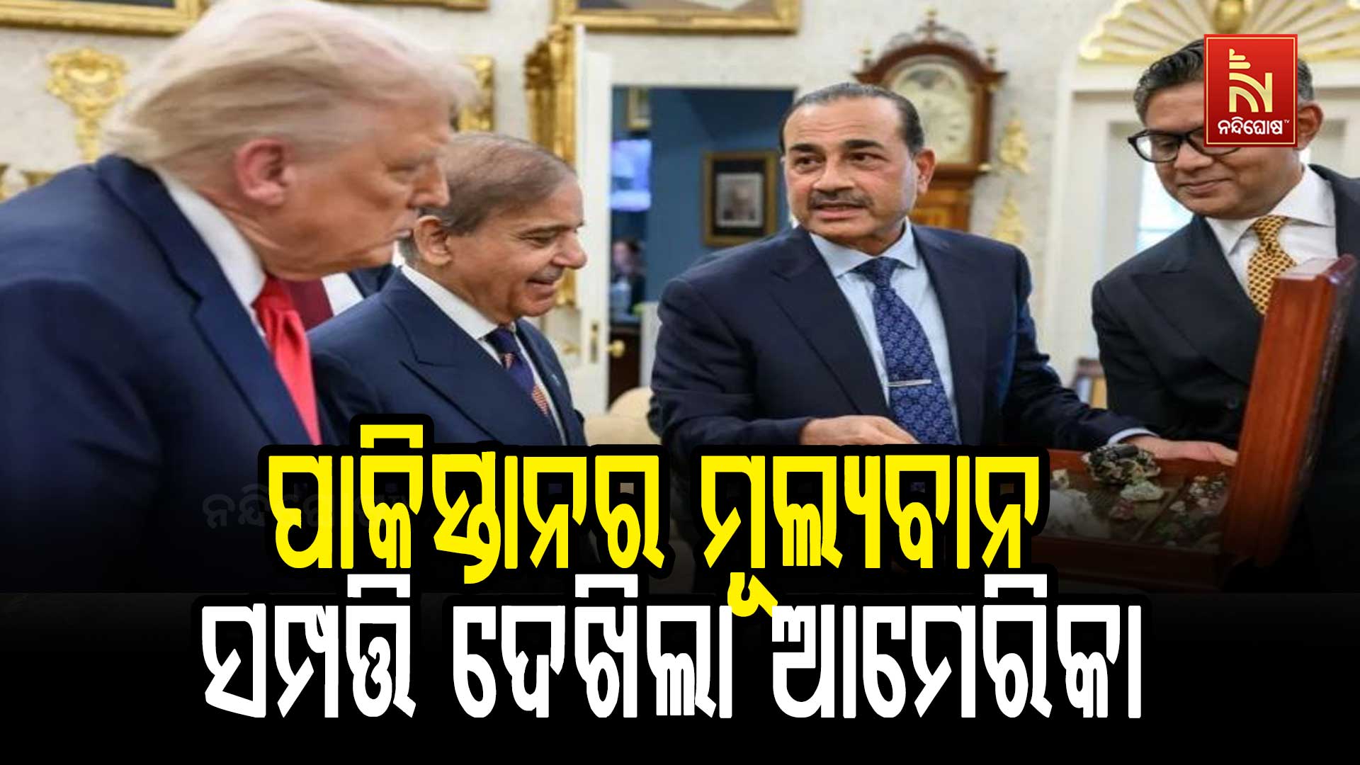 ନନ୍ଦିଘୋଷ ବ୍ୟୁରୋ: ନିକଟରେ ଆମେରିକା ରାଷ୍ଟ୍ରପତି ଡୋଲାନ୍ଡ ଟ୍ରମ୍ପଙ୍କୁ ସାକ୍ଷାତ କରିଛନ୍ତି ସରିଫ ଏବଂ ପାକିସ୍ତାନ ସେନା ମୁଖ୍ୟ ଅସୀମ ମୁନୀର । ତେବେ ଉଭୟ ଏକ ବାକ୍ସ ଧରି ଟ୍ରମ୍ପଙ୍କୁ ଦେଖାଉଥିବାର ଫଟୋ ଏବେ ସୋସିଆଲ ମିଡିଆରେ ବେଶ ଭାଇରାଲ ହେବାରେ ଲାଗିଛି । ଏହା ଦେଖାଯାଉଛି ଯେ ସେ ପାକିସ୍ତାନୀ ଖଣିରୁ ଧାତୁ, ବିରଳ ମାଟି ଏବଂ ମୂଲ୍ୟବାନ ପଥର ଧାରଣ କରିଥିବା ଏକ ଉପହାର ଦେଉଛନ୍ତି। ଏହା ଦ୍ୱାରା ଅନୁମାନ କରାଯାଉଛି ଯେ ଅସୀମ ମୁନିର ପାକିସ୍ତାନର ସମ୍ପଦ ଟ୍ରମ୍ପଙ୍କୁ ବିକ୍ରି କରିବାକୁ ପ୍ରସ୍ତୁତ।