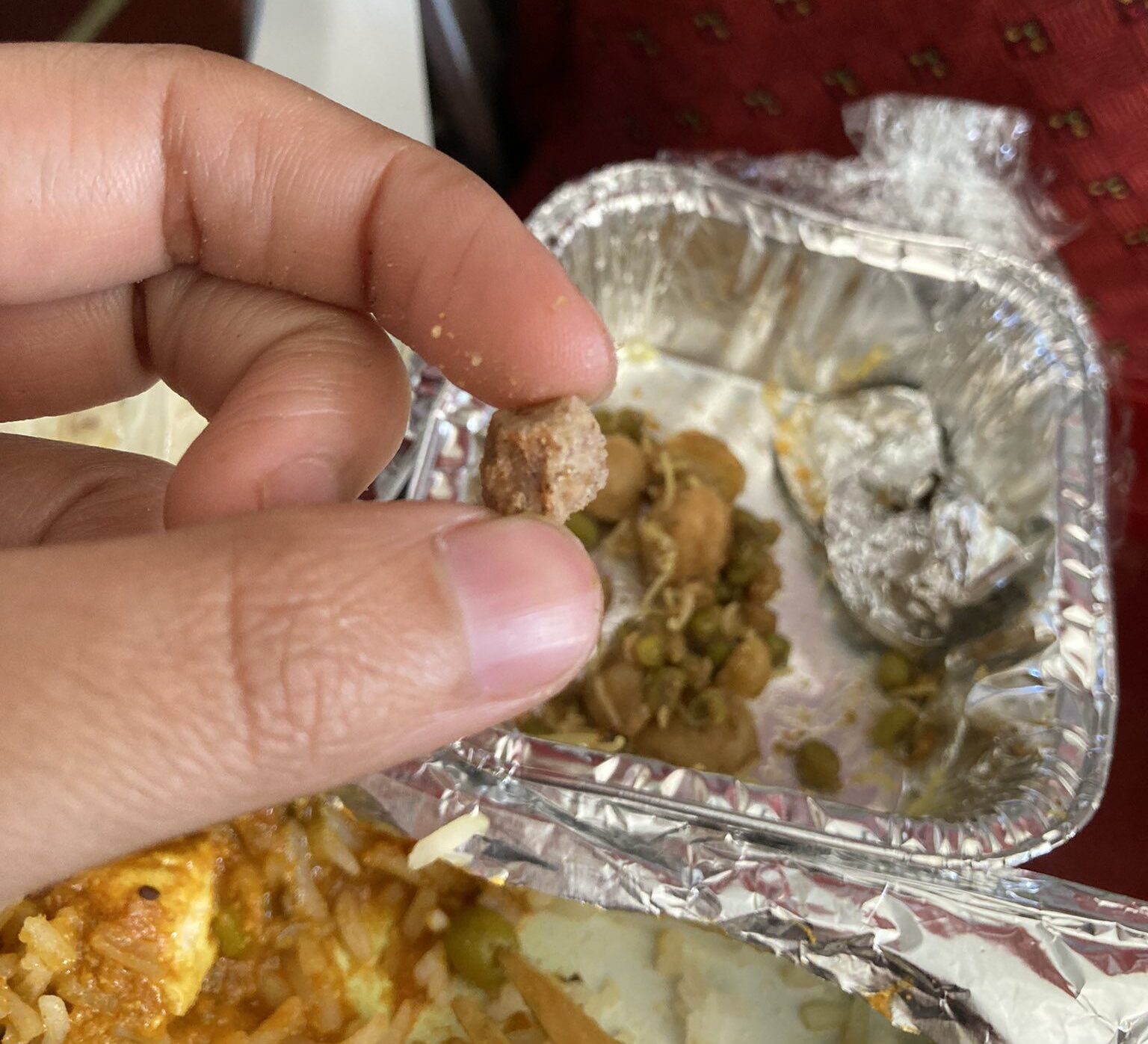 You don’t need resources and money to ensure stone-free food Air India (@airindiain). This is what I received in my food served in the flight AI 215 today. Crew member Ms. Jadon was informed.