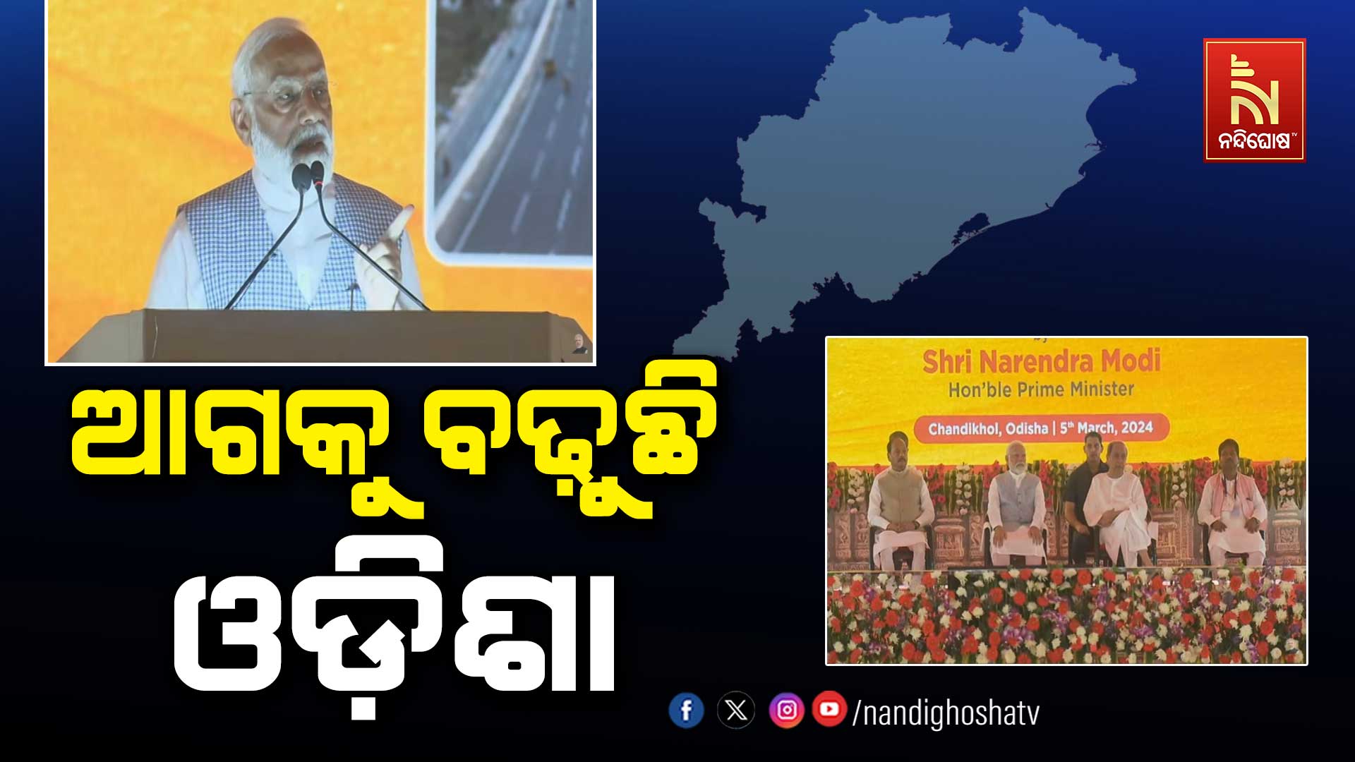 ଚଣ୍ଡିଖୋଲ: ଚଣ୍ଡିଖୋଲରେ ଯୋଗ ଦେଇଥିଲେ ପ୍ରଧାନମନ୍ତ୍ରୀ ମୋଦି। ଏହି ଅବସରରେ ସଭାକୁ ସମ୍ବୋଧିତ କରିଥିଲେ ପ୍ରଧାନମନ୍ତ୍ରୀ। ସେ କହିଥିଲେ, ଓଡିଶାର ଯାଜପୁରରେ ବିକାଶର ନୂଆ ଧାରା ବହିବା ଆରମ୍ଭ ହୋଇଛି। ଆଜି ବିଜୁ ବାବୁଙ୍କର ଜନ୍ମଜୟନ୍ତୀ ଅବସର ଥିବାରୁ ଓଡ଼ିଶାର ବିକାଶ ଲାଗି, ଦେଶର ବିକାଶ ଲାଗି ବିଜୁବାବୁଙ୍କ ଯୋଗଦାନ ଅପୂରଣୀୟ ରହିଛି ବୋଲି କହିଥିଲେ ପ୍ରଧାନମନ୍ତ୍ରୀ। ସମସ୍ତ ଦେଶବାସୀଙ୍କ ତରଫରୁ ଶ୍ରଦ୍ଧେୟ ବିଜୁବାବୁଙ୍କୁ ଶ୍ରଦ୍ଧାସୁମନ ଅର୍ପଣ କରୁଛି ବୋଲି କହିଥିଲେ ପ୍ରଧାନମନ୍ତ୍ରୀ ନରେନ୍ଦ୍ର ମୋଦି। ଏହି ଅବସରରେ ୨୦ ହଜାରରୁ ଅଧିକ କୋଟିର ଅନେକ ପ୍ରକଳ୍ପର ଲୋକାର୍ପଣ, ଶିଳାନ୍ଯାସ କରିଛନ୍ତି ମୁଖ୍ୟମନ୍ତ୍ରୀ। ପେଟ୍ରୋଲିୟମ, ପ୍ରାକୃତିକ ଗ୍ଯାସ ଓ ପରମାଣୁ ଶକ୍ତି ପ୍ରକଳ୍ପ ସହ ସଡ଼କ, ରେଳ, ପରିବହନ ଯୋଜନା ଦ୍ଵାରା ବିକାଶ କାମରେ ଏଠାରେ ଉଦ୍ଯୋଗ ଗତିବିଧି ବୃଦ୍ଧି ପାଇବ। ରୋଜଗାରର ନୂଆ ସୁଯୋଗ ସୃଷ୍ଟି ହେବ। ଏହି ପ୍ରକଳ୍ପ ଲାଗି ଓଡ଼ିଶାବାସୀଙ୍କୁ ବହୁତ ବହୁତ ଶୁଭେଚ୍ଛା ଜଣାଉଛି ବୋଲି କହିଥିଲେ ପ୍ରଧାନମନ୍ତ୍ରୀ।