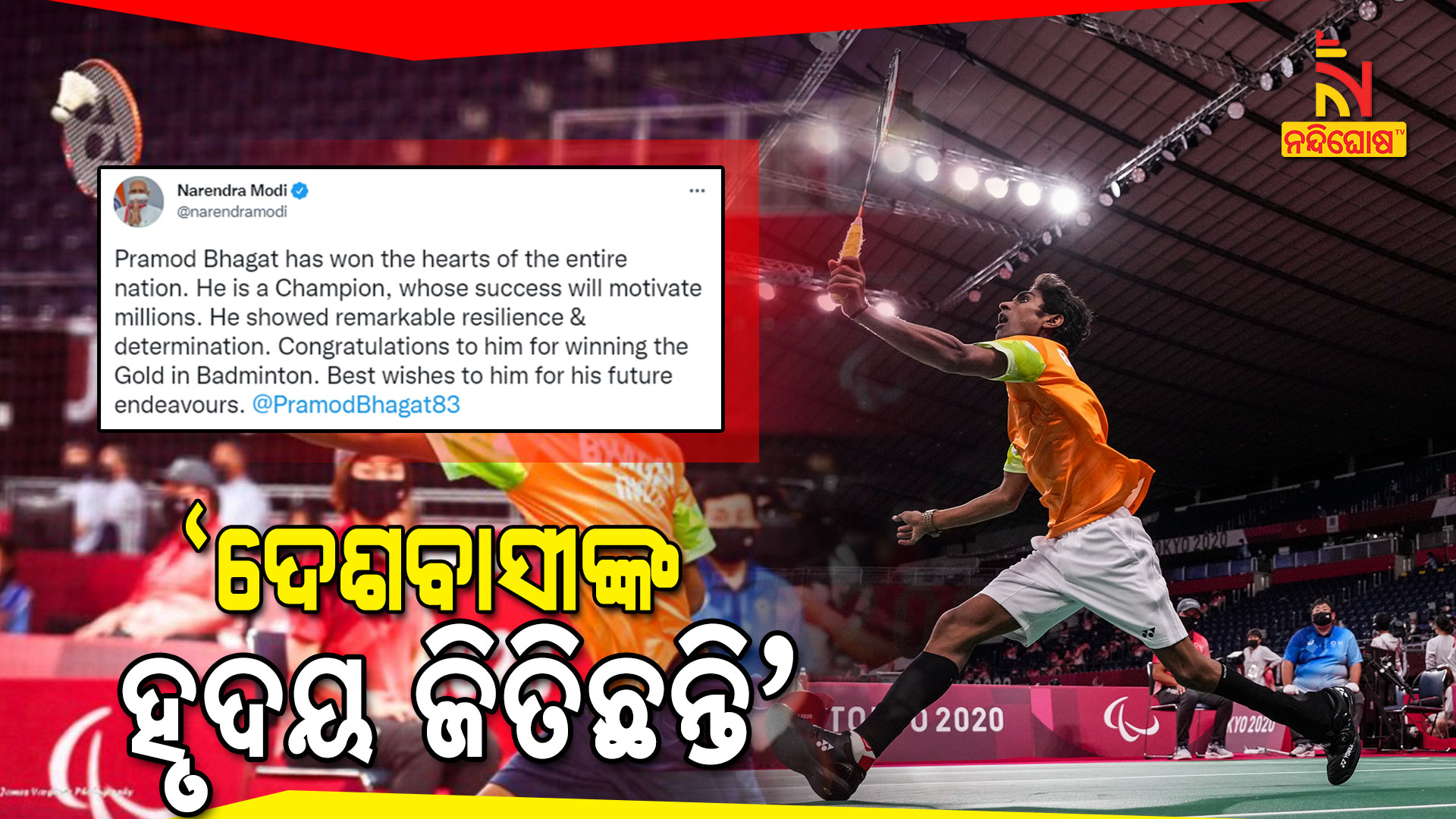 ଟ୍ୱିଟ୍ କରି ପ୍ରଧାନମନ୍ତ୍ରୀ ଲେଖିଛନ୍ତି, ପ୍ରମୋଦ ଭଗତ ସମଗ୍ର ଦେସବାସୀଙ୍କ ହୃଦୟ ଜିତିଛନ୍ତି । ସେ ଜଣେ ଚମ୍ପିଆନ୍ । ଯାହାଙ୍କ ସଫଳତା ଲକ୍ଷ ଲକ୍ଷ ଲୋକଙ୍କୁ ପ୍ରେରଣ ଦେବ । ପ୍ରମୋଦ ଉଲ୍ଲେଖନୀୟ ସ୍ଥିରତା ଓ ନିଷ୍ଠା ଦେଖାଇଛନ୍ତି । ବ୍ୟାଡମିଣ୍ଟନରେ ସ୍ୱର୍ଣ୍ଣ ଜିତିଥିବାରୁ ପ୍ରମୋଦଙ୍କୁ ଶୁଭେଚ୍ଛା ଜଣାଇବା ସହ ଭବିଷ୍ୟତ ପାଇଁ ଶୁଭକାମନା ଜଣାଇଛନ୍ତି ପ୍ରଧାନମନ୍ତ୍ରୀ ମୋଦି ।