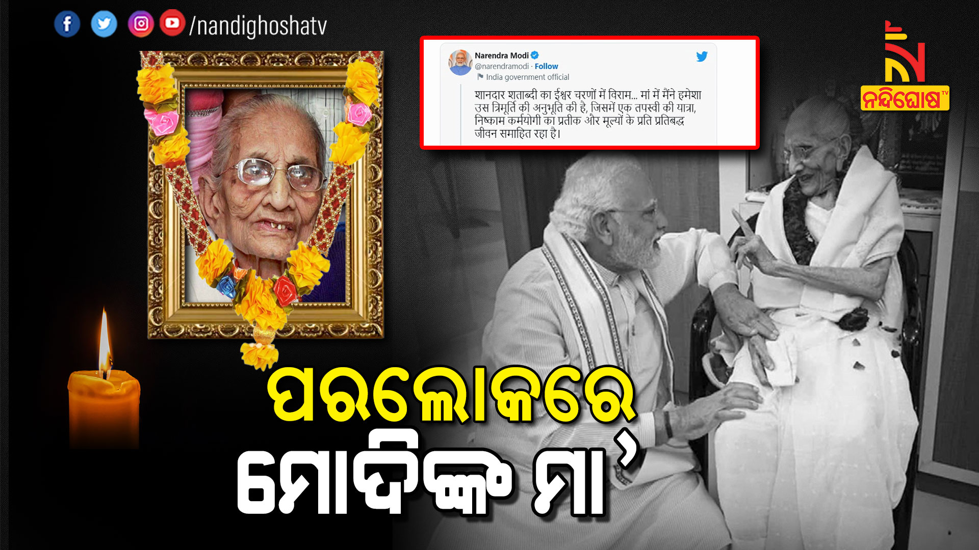 ହୀରାବେନଙ୍କ ମୃତ୍ୟୁ ନେଇ ୟୁଏନ ମେହେଟ୍ଟା ଇନଷ୍ଟିଚ୍ୟୁଟ ଅଫ କାର୍ଡିଓଲୋଜି ଆଣ୍ଡ ରିସର୍ଚ୍ଚ ସେଣ୍ଟର ପକ୍ଷରୁ ସ୍ପଷ୍ଟ କରାଯାଇଛି । ଭୋର ସାଢେ ୩ଟା ସମୟରେ ଆରପାରିକୁ ଚାଲିଯାଇଥିଲେ ହୀରାବେନ । ମା’ଙ୍କ ବିୟୋଗରେ ପ୍ରଧାନମନ୍ତ୍ରୀ କହିଛନ୍ତି- ସେ ଥିଲେ ଜଣେ ନିସ୍ବାର୍ଥପର କର୍ମଯୋଗୀ । ତାଙ୍କର ଜୀବନ ଥିଲା ମୂଲ୍ୟବୋଧଭିତ୍ତିକ । ଗତ ଜୁନରେ ମାଙ୍କ ଜନ୍ମଦିନ ପାଳନ କରିଥିଲେ ପ୍ରଧାନମନ୍ତ୍ରୀ ।