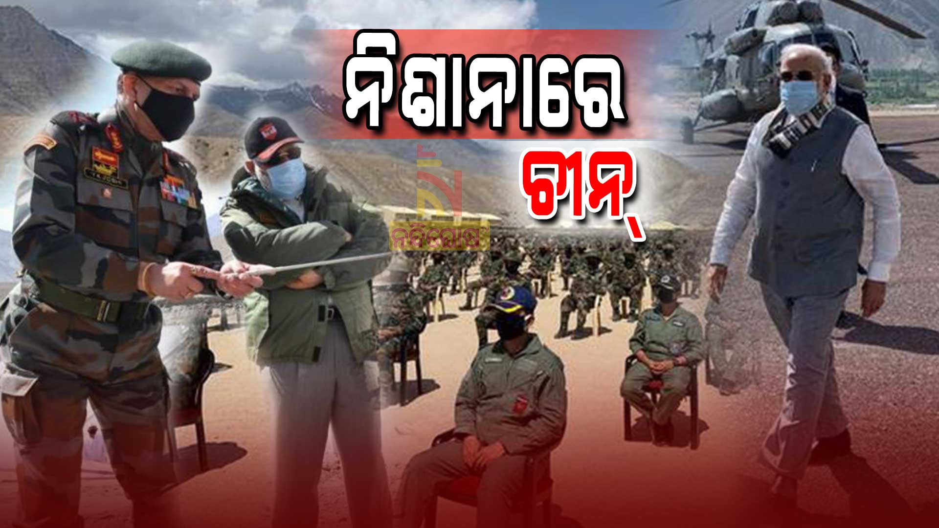 ଲେହ: ପ୍ରଧାନମନ୍ତ୍ରୀ ମୋଦି ଲେହରେ ଆଜି ଅଚାନକ ଲେହରେ ପହଂଚିଥିଲେ । ସେଠାରୁ ସେ ନିମୁ ଫରୱାର୍ଡ ବ୍ଲକକୁ ଯାଇଥିଲେ । ଯେଉଁଠାରେ ସେ ଯବାନଙ୍କୁ ସମ୍ବୋଧିତ କରିଥିଲେ । ଯବାନଙ୍କୁ ସମ୍ବୋଧିତ କରି ପ୍ରଧାନମନ୍ତ୍ରୀ ସେମାନଙ୍କ ବୀରତ୍ୱକୁ ସଲାମ କରିଥିଲେ । ଭାରତୀୟ ଯବାନଙ୍କ ଶୌର୍ଯ୍ୟକୁ ଦୁନିଆ ଦେଖିଲା ବୋଲି ସେ କହିଥିଲେ । ଏହା ସହ ପ୍ରଧାନମନ୍ତ୍ରୀ ଚୀନକୁ ନିଶାନାକୁ ନେଇଥିଲେ ।