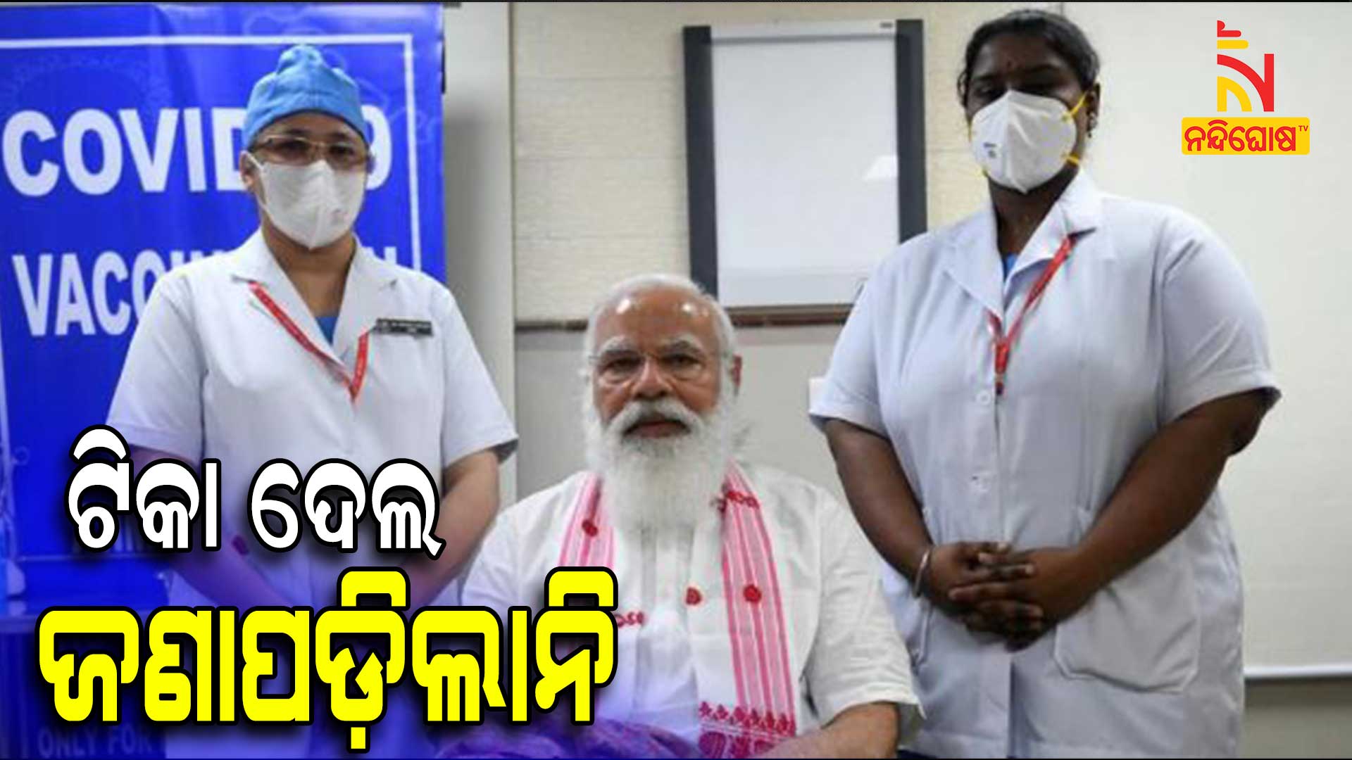 ପ୍ରଧାନମନ୍ତ୍ରୀଙ୍କୁ ସୋମବାର ଟିକା ନେଇଥିଲେ । କେରଳ ଓ ପୁଡୁଚେରୀର ନର୍ସ ରୋସାମ୍ମା ଅନୀଲ ଏବଂ ପି. ନିବେଦିତା ପ୍ରଧାନମନ୍ତ୍ରୀଙ୍କୁ ଟିକା ଦେଥିଲେ। ମୋଦି କାନ୍ଧରେ ଆସାମ ଗାମୁଛା ପକାଇଥିବା ଭିଡିଓରେ ନଜର ଆସିଥିଲେ । ସେପଟେ ଟିକା ନେବା ପରେ ବେସ ଖୁସି ଥିବା ମଧ୍ୟ ନଜର ଆସିଥିଲେ ପ୍ରଧାନମନ୍ତ୍ରୀ ।