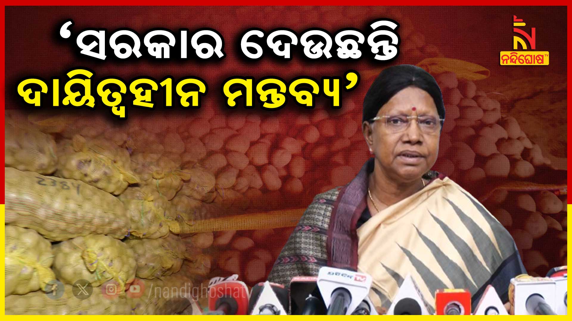 ନନ୍ଦିଘୋଷ ବ୍ୟୁରୋ: ରାଜ୍ୟରେ ଆଳୁ ସଙ୍କଟ ନେଇ ବିଜେପି ସରକାରଙ୍କୁ ଘେରିଲା ବିଜେଡି । ସରକାରଙ୍କୁ କଡ଼ା ସମାଲୋଚନା । ଅସାଧୁ ବ୍ୟବସାୟୀଙ୍କ ସହ ସରକାରଙ୍କ ମେଣ୍ଟ । ‘୧୫ ଦିନରେ ସମାଧାନ ହେବକି ନାହିଁ ସନ୍ଦେହ’ । ‘ଲୋକଙ୍କ ସମସ୍ଯା ପ୍ରତି ସରକାରଙ୍କ ନିଘା ନାହିଁ’ । ‘ଦାୟିତ୍ଵହୀନ ମନ୍ତବ୍ୟ ଦେଇ ଚାଲିଛନ୍ତି ସରକାର’ । ଆଳୁ ସମସ୍ଯା ଆଉ କେତେ ଦିନ ଧରି ଚାଲିବ ? ଆଳୁ ସମସ୍ଯାର ସମାଧାନ କରନ୍ତୁ ସରକାର । କୃତ୍ରିମ ଅଭାବ ସୃଷ୍ଟି କରିଛନ୍ତି ରାଜ୍ୟ ସରକାର ।