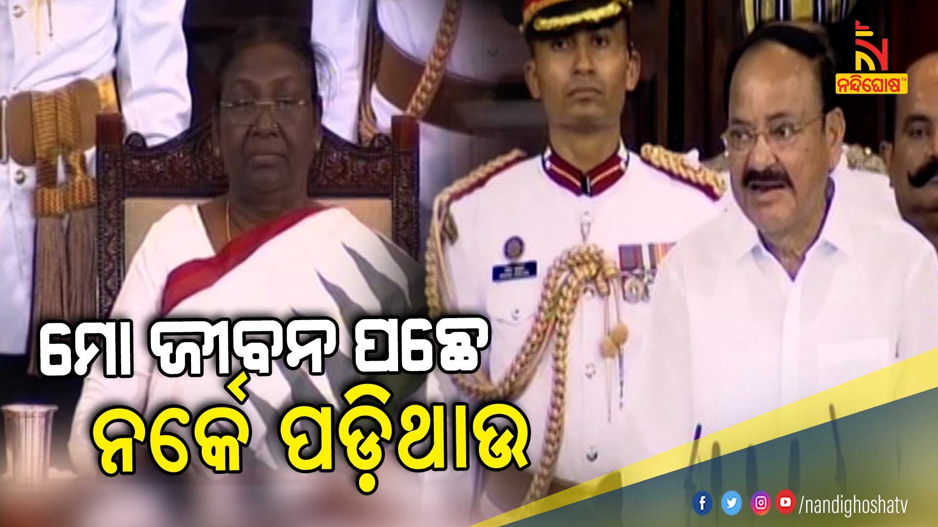 ତେବେ ଓଡ଼ିଆରେ ରାଷ୍ଟ୍ରପତି ଦ୍ରୌପଦୀ ମୁର୍ମୁ ସନ୍ଥ କବି ଭୀମ ଭୋଇଙ୍କ ପଂକ୍ତି କହିବା ମାତ୍ରେ କରତାଳିରେ ଫାଟି ପଡ଼ିଥିଲା ସେଣ୍ଟ୍ରାଲ ହଲ  । ଜଗନ୍ନାଥଙ୍କ ନାମ ଉଚ୍ଚାରଣ କରିବା ସହ ଏ ଓଡ଼ିଆ ଜାତିର ଅସ୍ମିତାଙ୍କୁ ନିଜ ଭାଷଣରେ ମନେ ପକାଇଥିଲେ ଦ୍ରୌପଦୀ ମୁର୍ମୁ  । ସେହିପରି ଓଡ଼ିଶାର ସଂସ୍କୃତି ଏବଂ ସଭ୍ୟତା ଯେଉଁ ମହା ମାନବୀଙ୍କୁ ଆଧାର କରି ରହିଛି  । ନିଜ ଶପଥ ଉତ୍ସବରେ ମନେ ପକାଇଥିଲେ ରାଷ୍ଟ୍ରପତି  । ସେହିପରି ରାଷ୍ଟ୍ରପତି ଦ୍ରୌପଦୀ ମୁର୍ମୁଙ୍କ ହିନ୍ଦୀ ଭାଷଣକୁ ଇଂରାଜୀରେ ଉଲ୍ଲେଖ କରିଥିଲେ ଉପରାଷ୍ଟ୍ରପତି ଭେଙ୍କୟା ନାଇଡ଼ୁ  ।