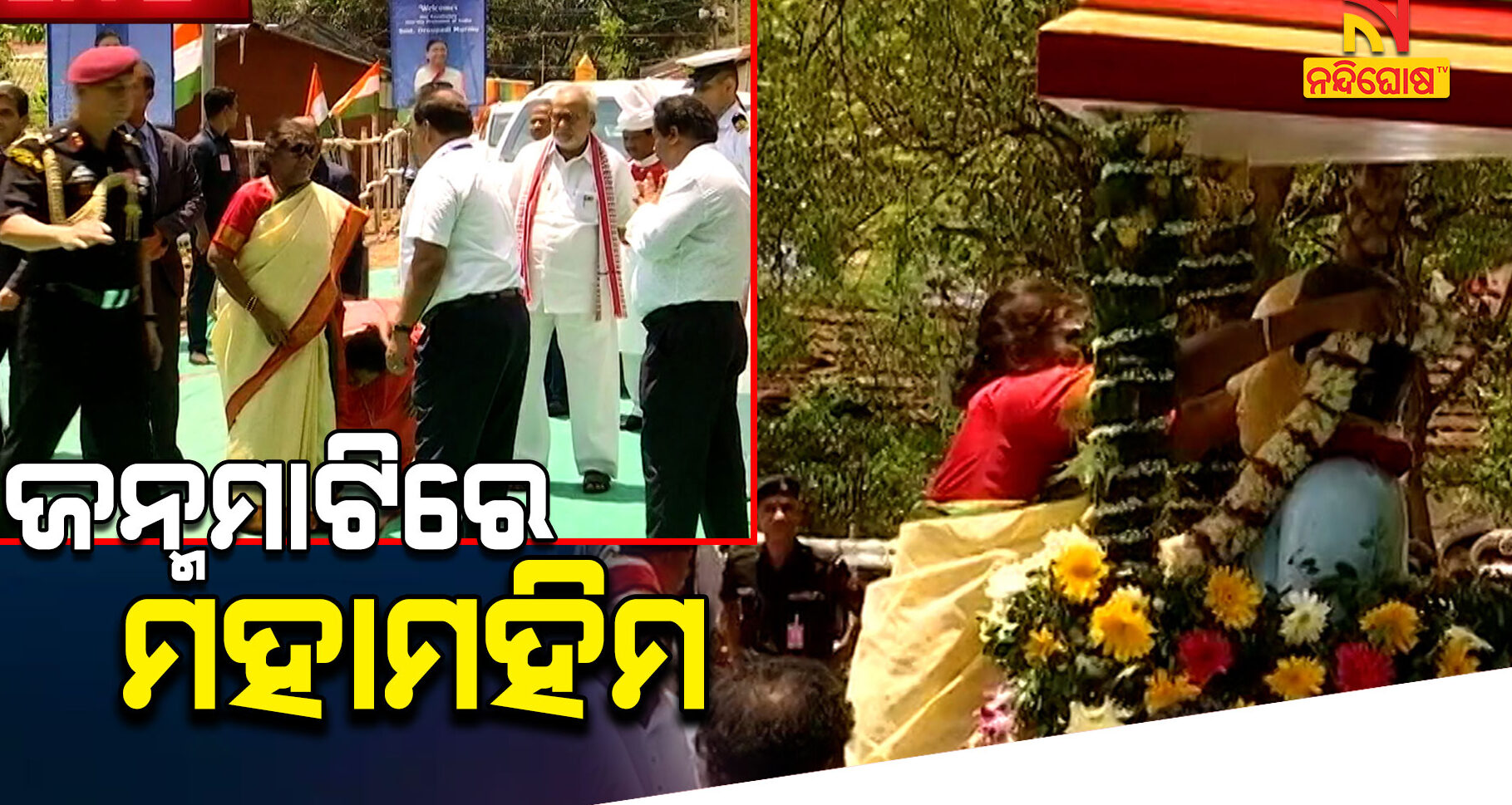 ଗୋଷାଣି: ଜନ୍ମମାଟିରେ ମହାମହିମ। ରାଷ୍ଟ୍ରପତି ହେବା ପରେ ଆଜି ପ୍ରଥମ କରି ମୟୂରଭଞ୍ଜ ଆସିଛନ୍ତି ଦ୍ରୗେପଦୀ ମୁର୍ମୁ। ରାଷ୍ଟ୍ରପତି ଭାବରେ ଓଡ଼ିଶାକୁ ଏହା ତାଙ୍କର ତୃତୀୟ ଗସ୍ତ ହୋଇଥିବାବେଳେ ଜନ୍ମମାଟିକୁ ପ୍ରଥମ ଗସ୍ତ। ବାଦାମପାହାଡ ହେଲିପ୍ୟାଡରେ ମ୍ୟାଡମ ପ୍ରେସିଡେଣ୍ଟ ପହଞ୍ଚିବା ପରେ ତାଙ୍କୁ ରାଜ୍ୟପାଳ ପ୍ରଫେସର ଗଣେଶୀ ଲାଲ ସ୍ବାଗତ କରିଥିଲେ । ମହାମହିମ ସେଠାରୁ ଶାଶୂଘର ଗାଁ ପାହାଡ଼ପୁର ଗସ୍ତ କରିଛନ୍ତି । ସେଠାରେ ସ୍ବର୍ଗତ ଶ୍ୟାମଚରଣ ମୁର୍ମୁଙ୍କୁ ପ୍ରତିମୂର୍ତ୍ତିରେ ମାଲ୍ୟାର୍ପଣ କରିଛନ୍ତି ରାଷ୍ଟ୍ରପତି ।
