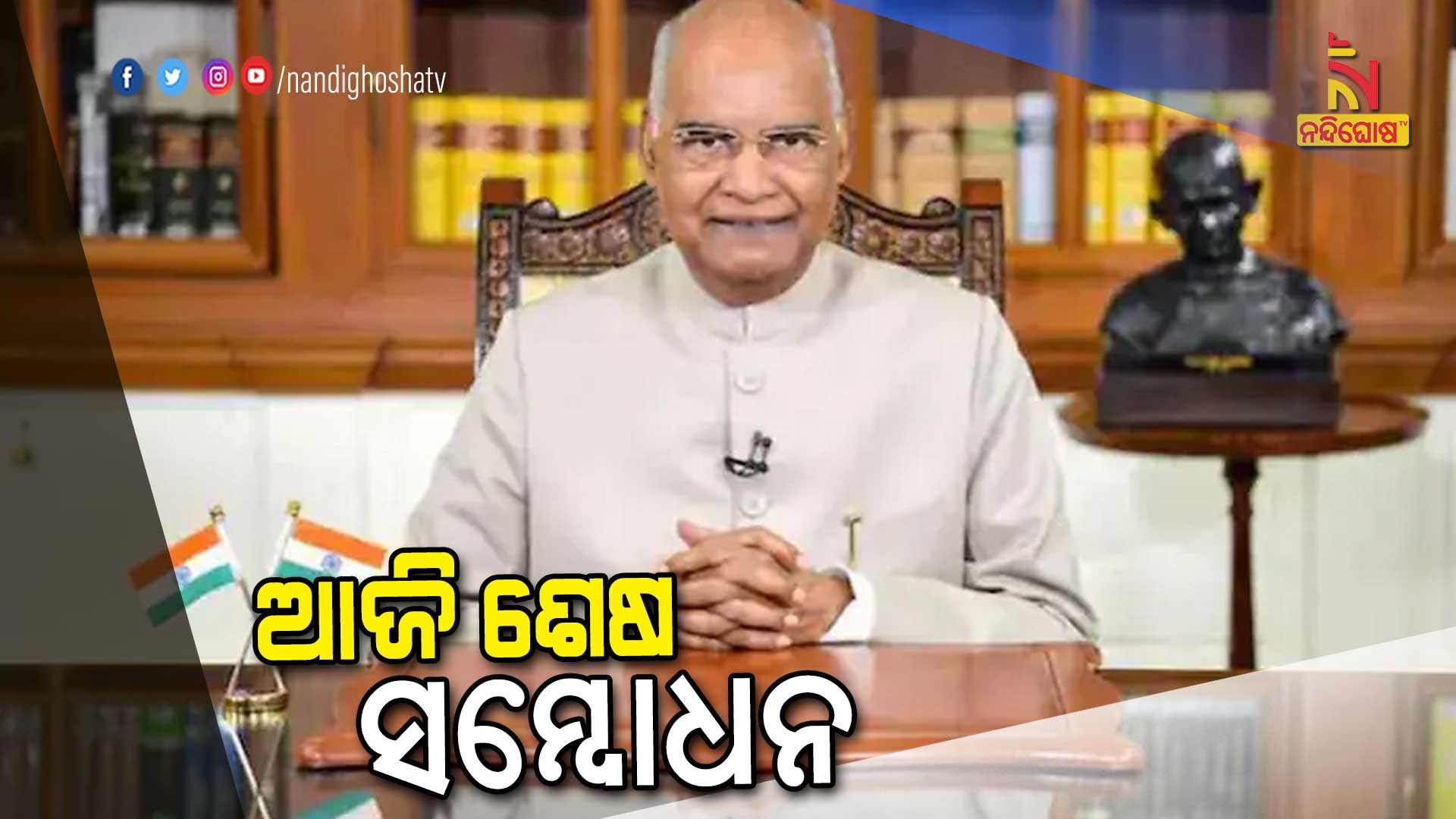 ନୂଆଦିଲ୍ଲୀ: ଆଜି ରାଷ୍ଟ୍ର ଉଦ୍ଦେଶ୍ୟରେ ଶେଷ ସମ୍ବୋଧନ କରିବେ ରାଷ୍ଟ୍ରପତି ରାମନାଥ କୋବିନ୍ଦ। ଆଜି ସନ୍ଧ୍ୟା ୭ଟା ରେ ଦେଶକୁ ସମ୍ବୋଧିତ କରିବେ ରାଷ୍ଟ୍ରପତି । ଦିନକ ପରେ କାର୍ଯ୍ୟକାଳ ସରୁଥିବାରୁ ଦେଶ ଉଦ୍ଦେଶ୍ୟରେ ତାଙ୍କର ଅଭିଭାଷଣ ମହତ୍ତ୍ବ ରଖିବ। ଗତକାଲି ସଂସଦର ସେଣ୍ଟ୍ରାଲ ହଲରେ ପ୍ରଧାନମନ୍ତ୍ରୀଙ୍କ ସହ ସବୁ ସାଂସଦ ମାନେ ଉପସ୍ଥିତ ରହି ରାମନାଥ କୋବିନ୍ଦଙ୍କୁ ବିଦାୟକାଳୀନ ସମ୍ବର୍ଦ୍ଧନା ଦେଇଥିଲେ ।