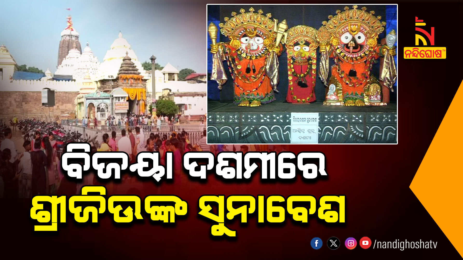 ପୁରୀ: ସୁନାରେ ଶ୍ରୀଜିଉ। ଆଜି ଦଶହରାରେ ଶ୍ରୀମନ୍ଦିରରେ ମହାପ୍ରଭୁଙ୍କ ରାଜରାଜେଶ୍ବର ବେଶ ବା ସୁନାବେଶ ଅନୁଷ୍ଠିତ ହୋଇଛି । ବର୍ଷକୁ ୫ଥର ସୁନାବେଶ ହେଉଥିବା ବେଳେ ଆଜି ଦିବସର ବିଶେଷତ୍ବ ରହିଛି । ମଙ୍ଗଳବାର ମଧ୍ୟ ମହାପ୍ରଭୁଙ୍କୁ ଆୟୁଧ ଲାଗି ସହ ସମ୍ପନ୍ନ ହୋଇଛି ସ୍ବତନ୍ତ୍ର ନୀତିକାନ୍ତି । ଦୁର୍ଗାମାଧବଙ୍କ ସହ ରାମକୃଷ୍ଣ ଓ ଅନ୍ୟ ଦେବଦେବୀ ପାଲିଙ୍କିରେ ଶ୍ରୀଜଗନ୍ନାଥ ବଲ୍ଳଭ ମଠକୁ ବିଜେ କରିଥିଲେ । ସ୍ବତନ୍ତ୍ର ପୂଜାର୍ଚ୍ଚନା କରାଯାଇଥିଲା । ମହାପ୍ରଭୁଙ୍କୁ ରତ୍ନ ସିଂହାସନରେ ସୁନାବେଶରେ ଦର୍ଶନ କରି ଭକ୍ତ ବିଭୋର ହୋଇଛନ୍ତି ।