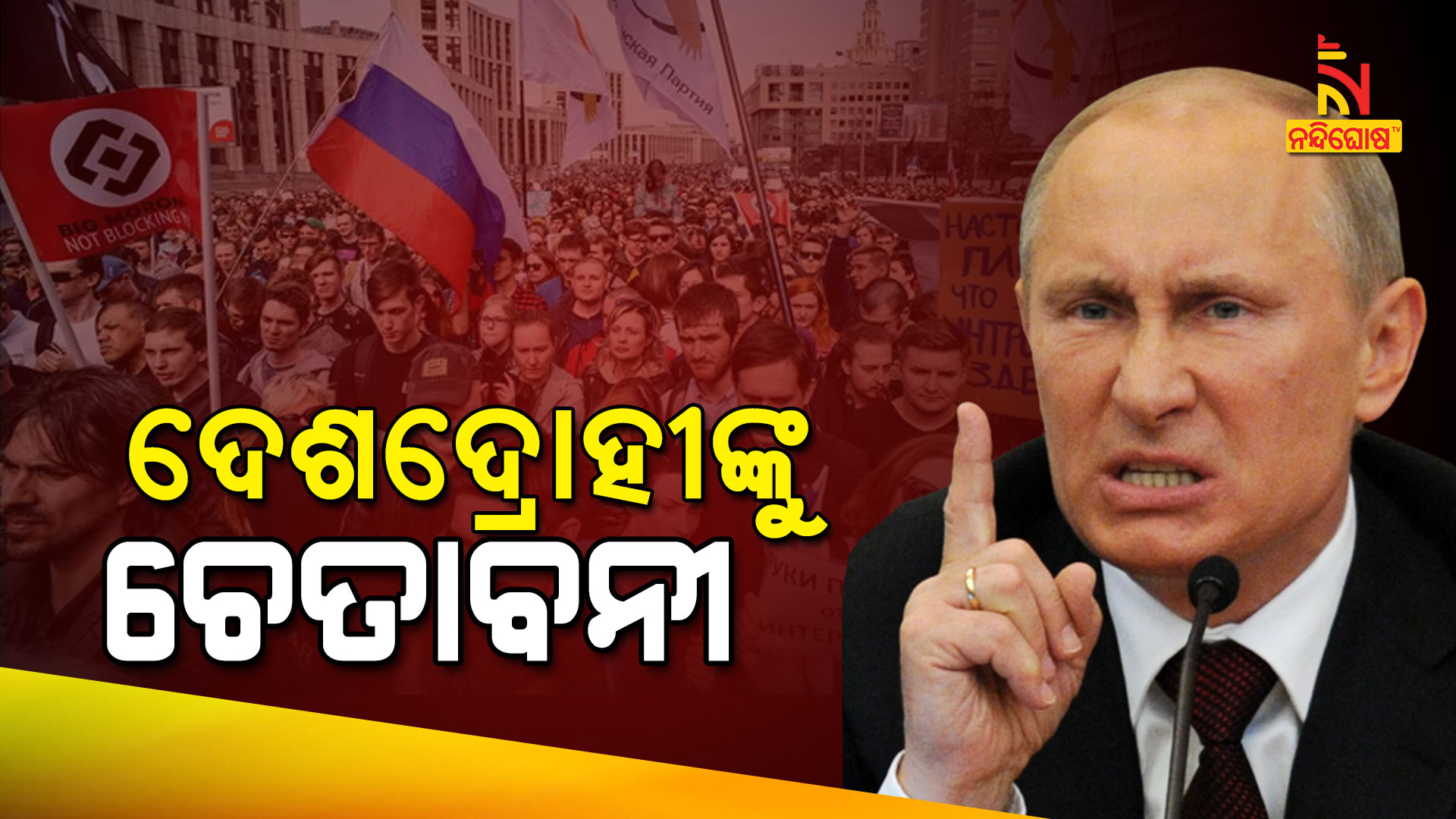 ସେମାନଙ୍କ ବିରୋଧରେ କଠୋର କାର୍ଯ୍ୟାନୁଷ୍ଠାନ ଗ୍ରହଣ କରାଯିବ । ଋଷକୁ ଧ୍ୱଂସ କରିବା ଲାଗି ପାଶ୍ଚାତ୍ୟ ଶକ୍ତି ଯୋଜନା କରୁଥିବାବେଳେ ଦେଶଦ୍ରୋହୀମାନେ ଆମେରିକାକୁ ସହଯୋଗ କରିବା ଗ୍ରହଣୀୟ ବୋଲି କହିଛନ୍ତି ପୁଟିନ୍ । ସଚ୍ଚା ଦେଶପ୍ରେମୀମାନଙ୍କ ଯୋଗୁ ଦେଶ ଶକ୍ତିଶାଳୀ ହୋଇଥାଏ । ରାଷ୍ଟ୍ରାୟତ୍ତ ଚ୍ୟାନେଲ ଓ୍ବାନର ଲାଇଭ ଟେଲିକାଷ୍ଟ ହେଉଥିବାବେଳେ ଜଣେ ପ୍ରଡ୍ୟୁସର ପ୍ରତିବାଦ କରିବା ଘଟଣାକୁ ନେଇ ପ୍ରତିକ୍ରିୟା ରଖିଛନ୍ତି ପୁଟିନ ।
