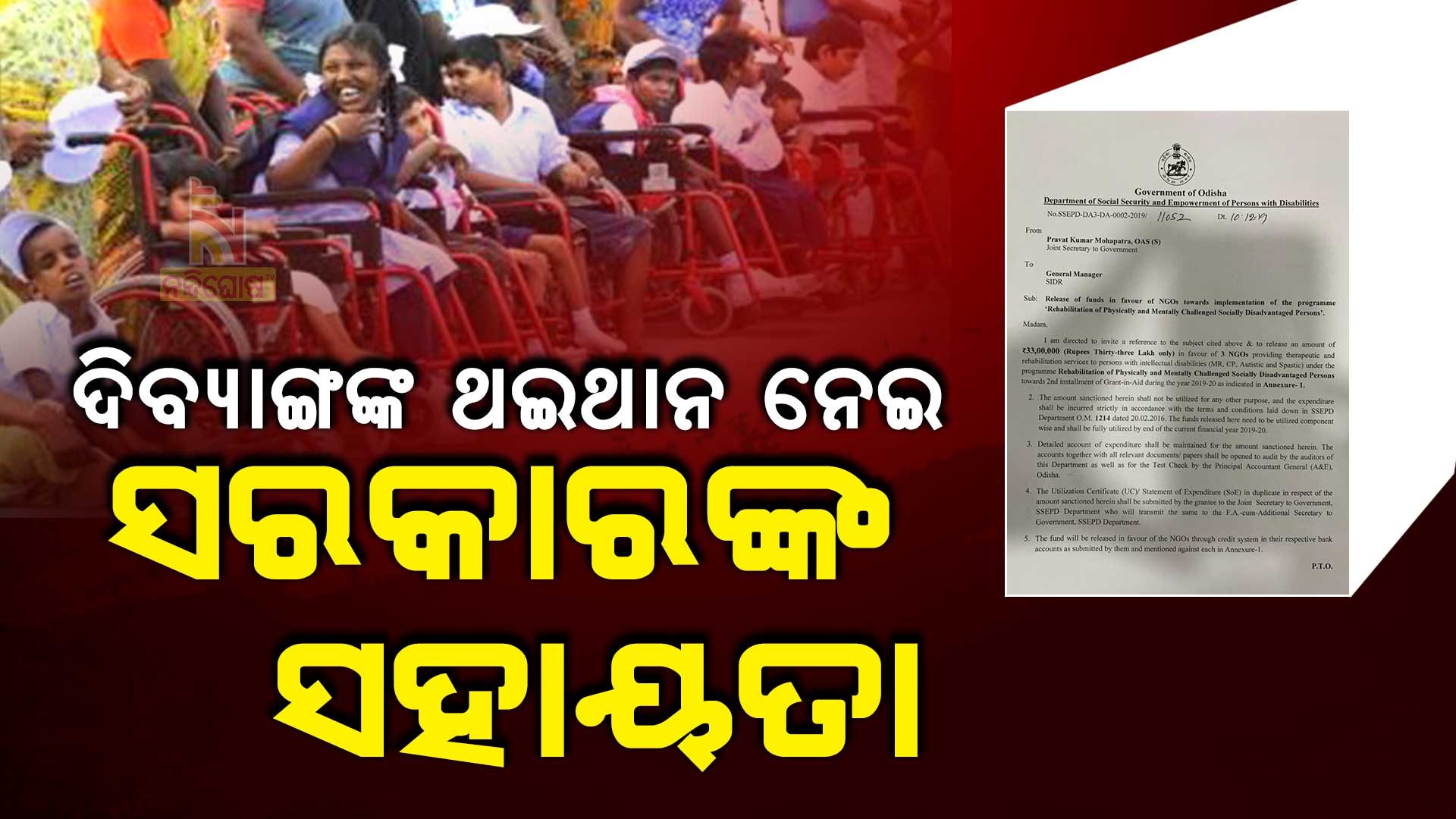 ଭୁବନେଶ୍ୱର: ଶାରିରୀକ ଓ ମାନସିକ ଭିନ୍ନକ୍ଷମଙ୍କ ଥଇଥାନ ନେଇ ସହଯୋଗର ହାତ ବଢ଼ାଇଛନ୍ତି ରାଜ୍ୟ ସରକାର । ଏନେଇ ରାଜ୍ୟ ସରକାରଙ୍କ ସାମାଜିକ ସୁରକ୍ଷା ଏବଂ ଭିନ୍ନକ୍ଷମ ସଶକ୍ତିକରଣ ବିଭାଗ ପକ୍ଷରୁ ୩ଟି ସ୍ୱେଚ୍ଛାସେବୀ ସଂଗଠନକୁ ୩୩ ଲକ୍ଷ ଟଙ୍କା ପ୍ରଦାନ କରାଯାଇଛି ।