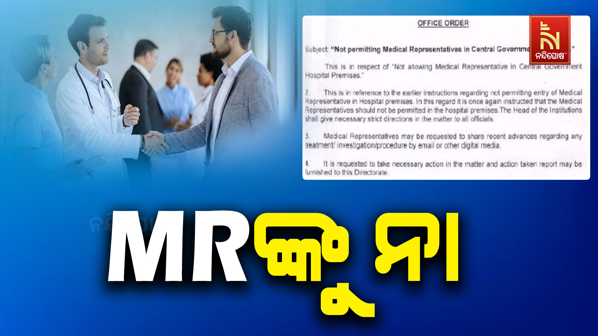 ନନ୍ଦିଘୋଷ ବ୍ୟୁରୋ: ସମସ୍ତ କେନ୍ଦ୍ରୀୟ ହସ୍ପିଟାଲଗୁଡ଼ିକୁ ସ୍ବାସ୍ଥ୍ୟସେବା ମହାନିର୍ଦ୍ଦେଶକଙ୍କ ଚିଠି। ହସ୍ପିଟାଲ ପରିସର ମଧ୍ଯରେ ମେଡିକାଲ ରିପ୍ରେଜେଣ୍ଟେଟିଭିମାନଙ୍କୁ ପ୍ରବେଶ ଅନୁମତି ନଦେବାକୁ ପତ୍ରରେ ନିର୍ଦ୍ଦେଶ ଦେଇଛନ୍ତି ମହାନିର୍ଦ୍ଦେଶକ। ଏସମ୍ପର୍କରେ ସମସ୍ତ କର୍ତ୍ତୃପକ୍ଷଙ୍କୁ ଆବଶ୍ୟକୀୟ ତଥା କଡ଼ା ନିର୍ଦ୍ଦେଶ ଦେବା ଲାଗି ପତ୍ରରେ ଦର୍ଶାଯାଇଛି। ତେବେ ଟ୍ରିଟମେଣ୍ଟ, ଇନଭେଷ୍ଟିଗେସନ ଓ ପ୍ରସିଡ୍ୟୁର ସମ୍ପର୍କରେ ଇମେଲ କିମ୍ବା ଡିଜିଟାଲ ମିଡିଆ ଜରିଆରେ ମେଡିକାଲ ରିପ୍ରେଜେଣ୍ଟେଟିଭମାନଙ୍କୁ ଅନୁରୋଧ କରାଯାଇପାରେ ବୋଲି ପତ୍ରରେ କୁହାଯାଇଛି। ଏସମ୍ପର୍କରେ ଆକ୍ସନ ଟେକେନ ରିପୋର୍ଟ ନିର୍ଦ୍ଦେଶାଳୟ ନିକଟରେ ଦାଖଲ କରିବାଲାଗି ନିର୍ଦ୍ଦେଶ ଦିଆଯାଇଛି।