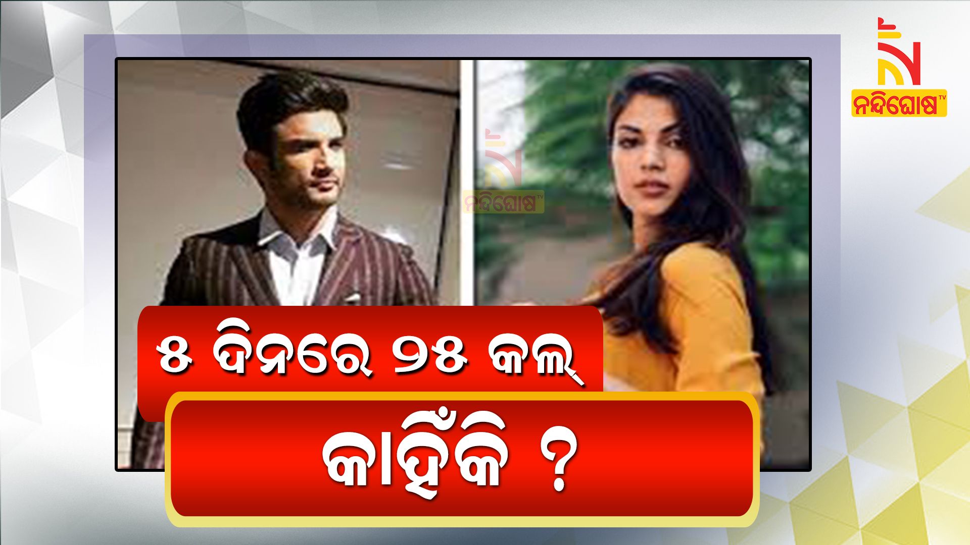 ମୁମ୍ବାଇ: ସୁଶାନ୍ତ ସିଂହ ରାଜପୁତ ମୃତ୍ୟୁ ମାମଲାରେ ପ୍ରତିଦିନ ନୂଆ ମୋଡ଼ ଦେଖିବାକୁ ମିଳୁଛି । ଏହି ପରିପ୍ରେକ୍ଷୀରେ ସମସ୍ତଙ୍କ ଆଖି ରିୟା ଚକ୍ରବର୍ତ୍ତୀଙ୍କ ଉପରେ ରହିଛି। ବର୍ତ୍ତମାନ ରିୟା ଚକ୍ରବର୍ତ୍ତୀଙ୍କ କଲ୍ ଡିଟେଲ୍ସ ମଧ୍ୟ ପ୍ରକାଶ ପାଇଛି । ଏହି କଲ୍ ଡିଟେଲ୍ସ ଅନୁଯାୟୀ, ଯେତେବେଳେ ସୁଶାନ୍ତ ୨୦୨୦ ମସିହା ଜାନୁୟାରୀ ୨୦ ରୁ ୨୪ ପର୍ଯ୍ୟନ୍ତ ତାଙ୍କ ଭଉଣୀ ରାନୀଙ୍କୁ ଭେଟିବାକୁ ଚଣ୍ଡିଗଡ଼ ଯାଇଥିଲେ, ରିୟା ୫ ଦିନରେ ପ୍ରାୟ ୨୫ ଥର କଲ୍ କରିଥିଲେ ।