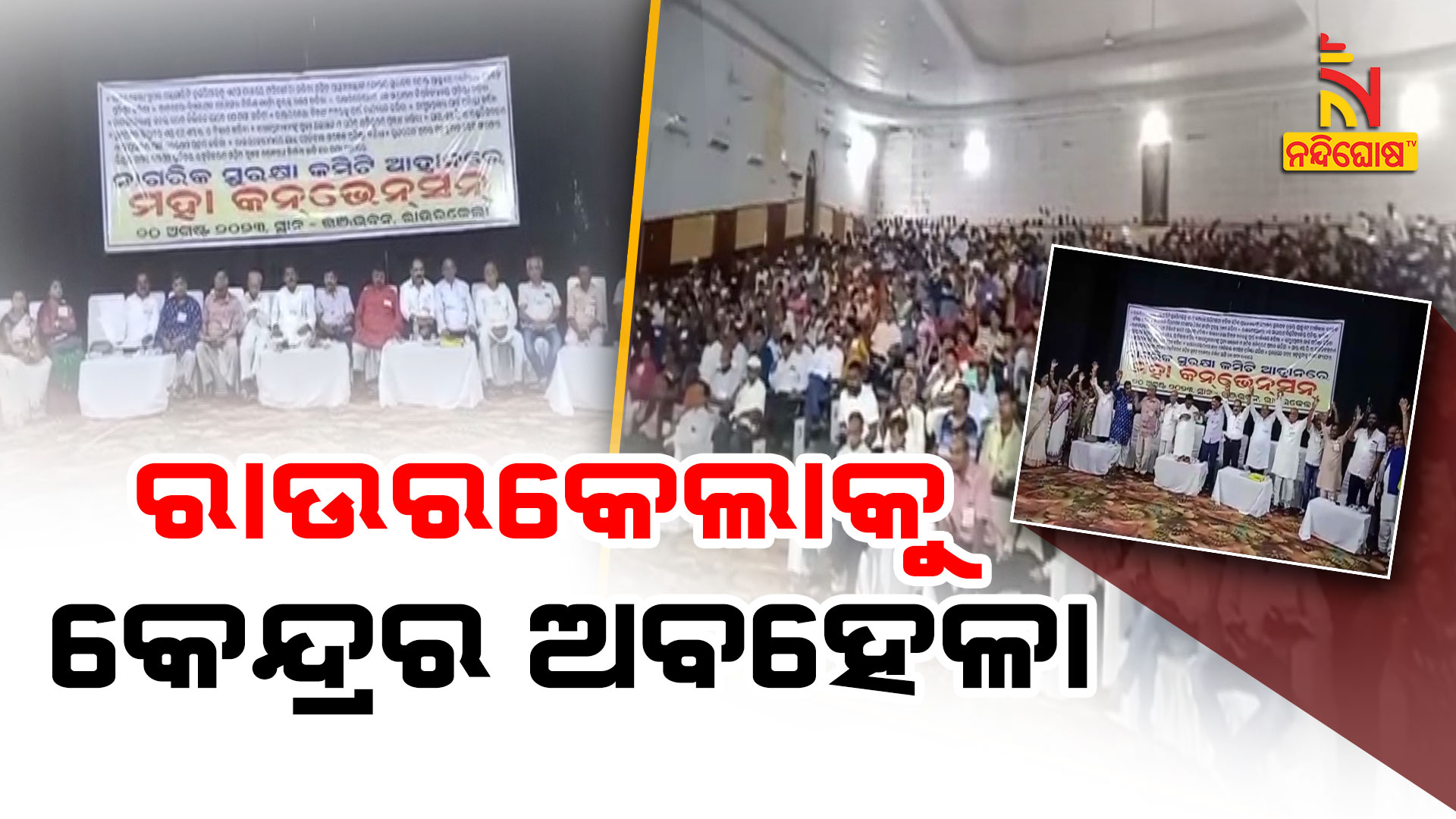 ରାଉରକେଲା: ରାଉରକେଲାକୁ ଅବହେଳା ପ୍ରତିବାଦରେ କେନ୍ଦ୍ର ବିରୋଧରେ ବ୍ୟାପକ ଆନ୍ଦୋଳନ ପାଇଁ ନିଷ୍ପତ୍ତି । ସହରର ଭଞ୍ଜ ଭଵନ ଠାରେ ନାଗରିକ ସୁରକ୍ଷା କମିଟି ପକ୍ଷରୁ ଜିଲ୍ଲା ସ୍ତରୀୟ ମହା ସମ୍ମିଳନୀରେ ସାମୁହିକ ନିଷ୍ପତ୍ତି ନିଆଯାଇଛି । ରାଉରକେଲାକୁ ରେଲଓ୍ବେ ଡିଭିଜନ କରିବା, ବିମାନବନ୍ଦର ପୁର୍ଣ୍ଣ କାର୍ଯ୍ୟକ୍ଷମ କରି ନିୟମିତ ବିମାନ ଚଳାଚଳ, ସୁନ୍ଦରଗଡ଼ ଜିଲ୍ଲା ହେଡ କ୍ବାଟରକୁ ରେଳପଥ ସଂଯୋଗ, ତାଳଚେର ଵିମଳାଗଡ ରେଳପଥ ନିର୍ମାଣ କାର୍ଯ୍ୟ ତୁରନ୍ତ ଶେଷ କରିବା ସହ ୧୧ ଦଫା ଦାବିରେ ଆନ୍ଦୋଳନ କରିବା ପାଇଁ ନିଷ୍ପତ୍ତି ହୋଇଛି । ଏହାସହ ୪ଶହ କୋଟି ଟଙ୍କା ବ୍ୟୟ ଅଟକଳରେ ନିର୍ମିତ ସୁପର ସ୍ପେଶିଆଲିଟି ହସ୍ପିଟାଲକୁ ଏମ୍ସ ଦ୍ଵାରା ପରିଚାଳନା କରିବା ପାଇଁ ଦାବି ହେଉଛି । ସମ୍ମିଳନୀରେ ବିଭିନ୍ନ ରାଜନୈତିକ ଦଳର ନେତାଙ୍କ ସହ ବିଭିନ୍ନ ଶ୍ରମିକ ସଂଗଠନ, ମହିଳା ସଂଗଠନ, ସାମାଜିକ ଓ ସାଂସ୍କୃତିକ ସଂଗଠନ, ଵ୍ୟବସାୟୀ ସଂଗଠନ, ବୁଦ୍ଧିଜୀବୀ ଓ ସହରବାସୀ ଯୋଗ ଦେଇଥିଲେ।