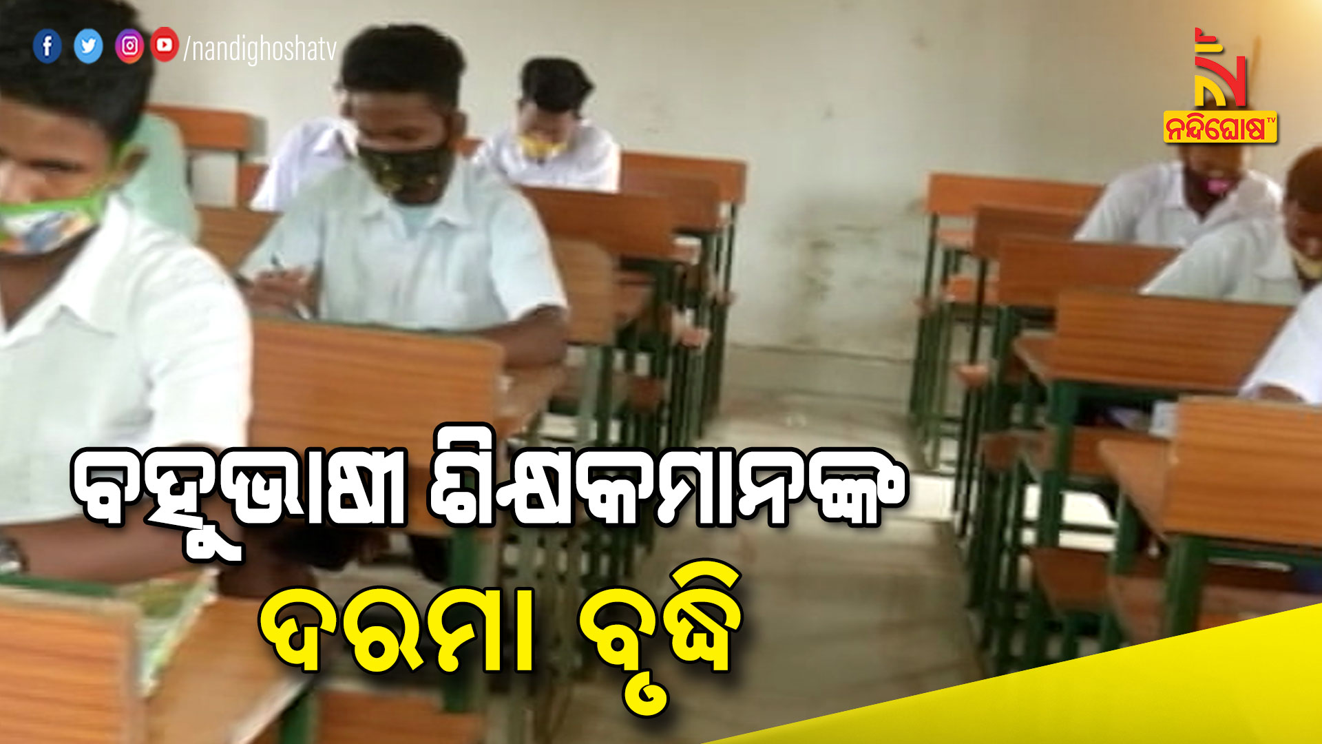 ଭୁବନେଶ୍ୱର: ବହୁଭାଷୀ ଶିକ୍ଷକମାନଙ୍କ ଦରମା ବୃଦ୍ଧି । ରାଜ୍ୟ ସରକାର ବହୁଭାଷୀ ଶିକ୍ଷକମାନଙ୍କୁ ଉତ୍ସାହିତ କରିବା ପାଇଁ ସେମାନଙ୍କ ମାସିକ ଦରମା ୩୨୦୦ ଟଙ୍କାରୁ ୫୩୭୯ ଟଙ୍କାକୁ ବୃଦ୍ଧି କରିଛନ୍ତି । ବର୍ତ୍ତମାନ ପରିସ୍ଥିତିରେ ମାସିକ ୩୨୦୦ ଟଙ୍କାରେ ବହୁଭାଷୀ ଶିକ୍ଷକମାନେ ଅସୁବିଧାରେ ଚଳୁଥିଲେ । ସେମାନେ ନିଜର ଦାୟିତ୍ବକୁ ସୁଚାରୁରୂପେ ନିର୍ବାହ କରୁଥିବାରୁ ରାଜ୍ୟ ସରକାର ଏହି ନିଷ୍ପତ୍ତି ନେଇଛନ୍ତି ।