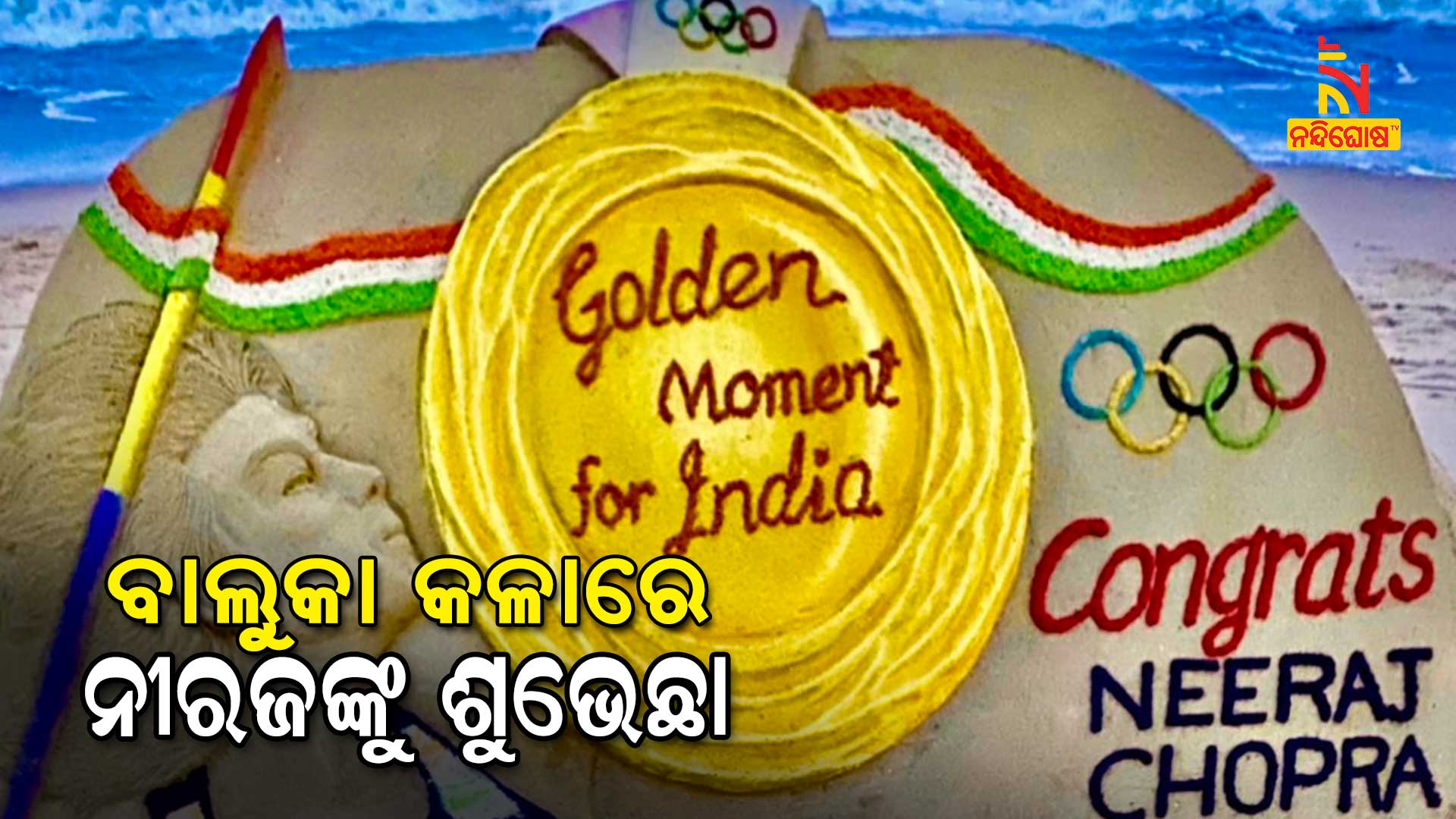 ପୁରୀ: ଟୋକିଓ ଅଲିମ୍ପିକ୍ସରେ ନୀରଜ ଚୋପ୍ରା ଜିଣିଛନ୍ତି ସ୍ବର୍ଣ୍ଣ ପଦକ । ଜାଭେଲିନ ଥ୍ରୋରେ ତାଙ୍କର ଐତିହାସିକ ସଫଳତା ନେଇ ପୁରୀ ବେଳାଭୂମିରେ ବାଲୁକା କଳା କରିଛନ୍ତି ଆନ୍ତର୍ଜାତୀୟ ବାଲୁକାଶିଳ୍ପୀ ସୁଦର୍ଶନ ପଟ୍ଟନାୟକ । ବାଲୁକା କଳା ମାଧ୍ୟମରେ ଶୁଭେଚ୍ଛା ଜଣାଇବା ସହ ନୀରଜ ଦେଶ ପାଇଁ ଗୌରବ ବୋଲି କହିଛନ୍ତି ସୁଦର୍ଶନ ।
