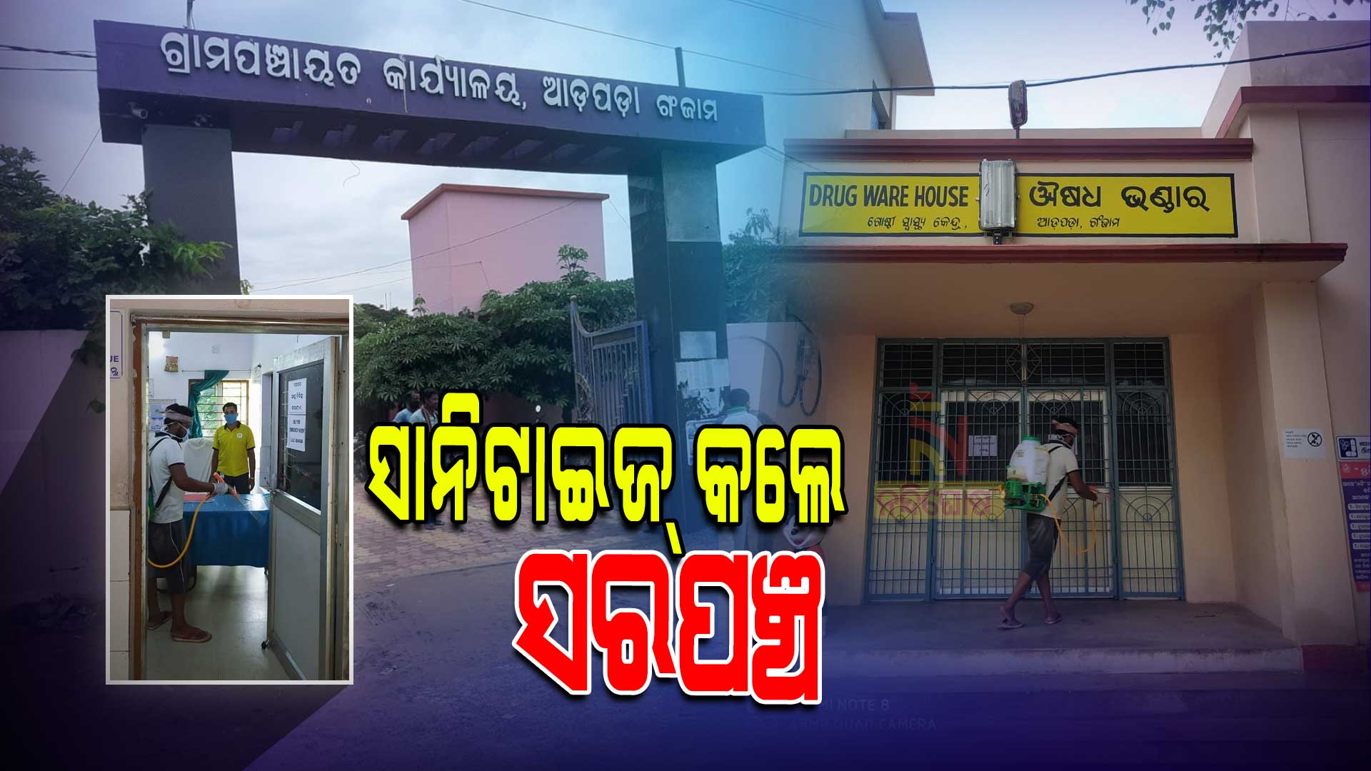 ଏଭଳି ଅବସ୍ଥାରେ ଜଣେ ସାହସୀ କରୋନା ଯୋଦ୍ଧା ତଥା ଆଡପଡା ପଞ୍ଚାୟତର ଯୁବ ସରପଞ୍ଚ ନୀଳମାଧଵ ରାଉତ ନିଜ ପଞ୍ଚାୟତରେ ଥିବା ଗୋଷ୍ଠୀସ୍ୱାସ୍ଥ୍ୟ କେନ୍ଦ୍ର ସମେତ ପଞ୍ଚାୟତ ଏବଂ ସଙ୍ଘରୋଧ କେନ୍ଦ୍ରକୁ କାନ୍ଧରେ ସାନିଟାଇଜ ମେସିନ ଧରି ବୁଲି ବୁଲି ସାନିଟାଇଜ କରିଛନ୍ତି ।