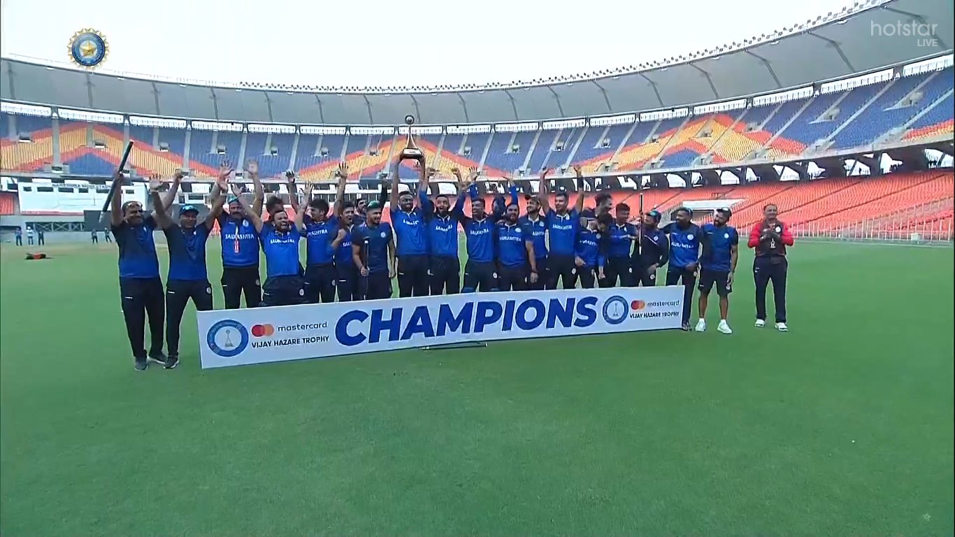 ନୂଆଦିଲ୍ଲୀ: ବିଜୟ ହଜାରେ ଟ୍ରଫିର ଫାଇନାଲ୍ ମ୍ୟାଚରେ ମହାରାଷ୍ଟ୍ରକୁ ହରାଇ ସୌରାଷ୍ଟ୍ର ଚମ୍ପିଆନ ହୋଇଛି । ଦ୍ୱିତୀୟ ଥର ପାଇଁ ସୌରାଷ୍ଟ୍ର ଟ୍ରଫି ଜିତିଛି । ସୌରାଷ୍ଟ୍ର ଟିମ୍ ୧୪ ବର୍ଷ ପରେ ଦ୍ୱିତୀୟ ଥର ପାଇଁ ଏହି ସଫଳତା ହାସଲ କରିଛି । ୨୦୦୮ ମସିହାରେ ଦଳ ଚମ୍ପିଆନ ହୋଇଥିଲା । ମହାରାଷ୍ଟ୍ରର ଅଧିନାୟକ ଋତୁରାଜ ଗାୟକ୍ୱାଡଙ୍କ ଉପରେ ସୌରାଷ୍ଟ୍ରର ଶେଲ୍ଡନ ଜ୍ୟାକ୍ସନଙ୍କ ଇନିଂସ ଭାରି ପଡ଼ିଛି । ସୌରାଷ୍ଟ୍ର ୫ ୱିକେଟରେ ମ୍ୟାଚ ଓ ଟାଇଟଲ୍ ନିଜ ନାଁରେ କରିଛି ।