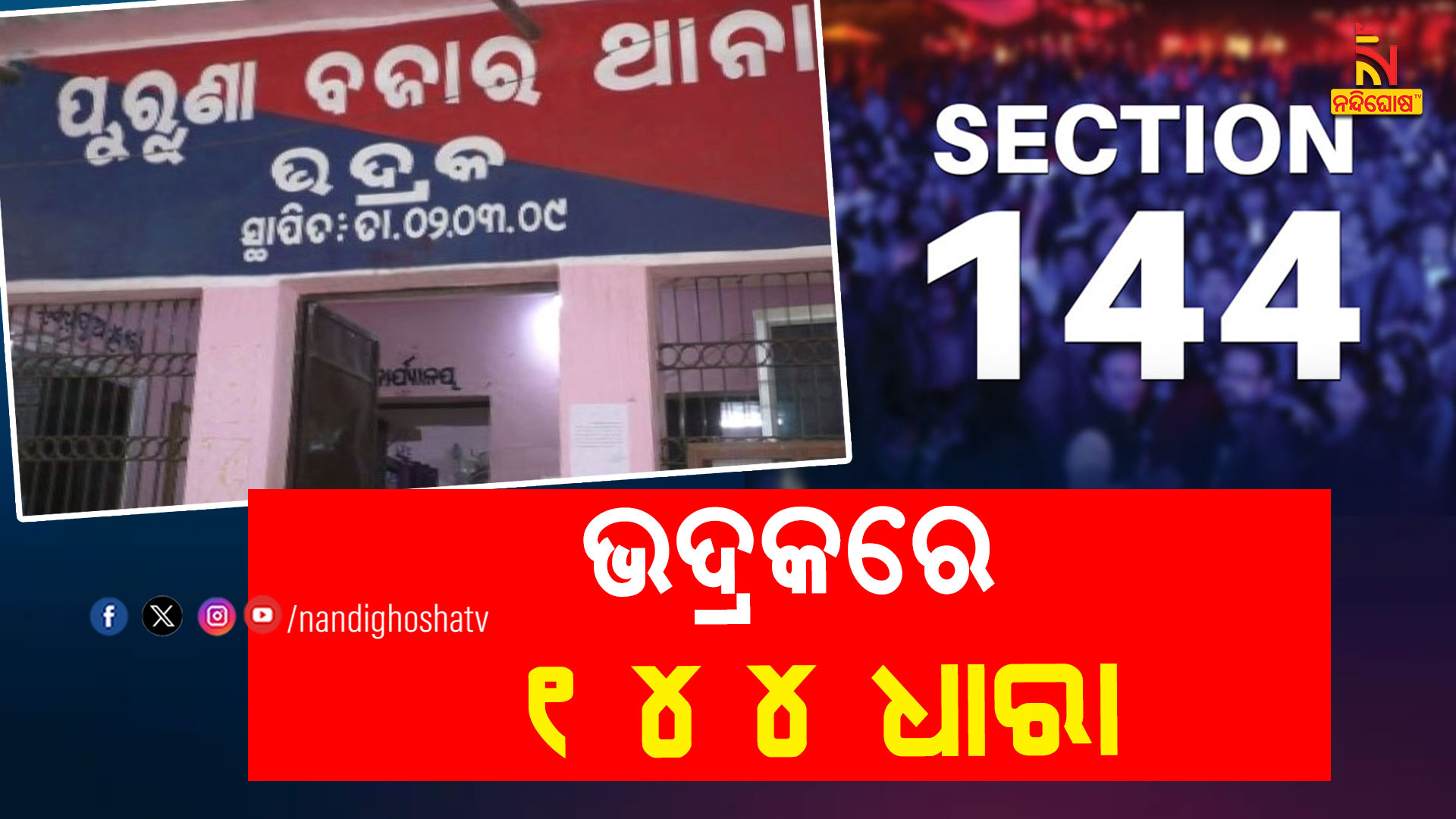 ଭଦ୍ରକ : ମଦିନା ମୈଦାନ ଓ ଆଖପାଖ ୨୦୦ ମିଟର ପରିସରରେ ୧୪୪ ଧାରା ଜାରୀ । ୧୪୪ ଧାରା ଜାରିକଲେ ଭଦ୍ରକ ଉପଜିଲ୍ଲାପାଳ ମନୋଜ ପାତ୍ର । ୮ ତାରିଖ ଦିନ ପୂର୍ବାହ୍ନ 1୧୧ଟାରୁ ୯ ତାରିଖ ସକାଳ ୬ଟା ପର୍ଯ୍ୟନ୍ତ କଟକଣା ଜାରି । ପ୍ରତିବାଦ ସଭାକୁ ଆଇନ ଶୃଙ୍ଖଳା ବିପର୍ଯୟ ହେବା ସମ୍ଭାବନାକୁ ନେଇ କଟକଣା । ନିୟମ ଉଲଂଘନ କଲେ ଭଦ୍ରକ ପୁରୁଣାବଜାର ପୋଲିସକୁ କାର୍ଯ୍ୟାନୁଷ୍ଠାନ ନିର୍ଦ୍ଦେଶ । ସୂଚନା ଅନୁସାରେ ଭଦ୍ରକ ସହର ପୁରୁଣା ବଜାର ଥାନା ଅଧିନ ମଦିନା ମୈଦାନ ସମ୍ମୁଖରେ ସବିର ଖାଁ ନାମକ ଜଣେ ବ୍ୟକ୍ତି ଏକ ପ୍ରତିବାଦ ସଭା କରିବାକୁ ଆବେଦନ କରିଥିଲେ ।