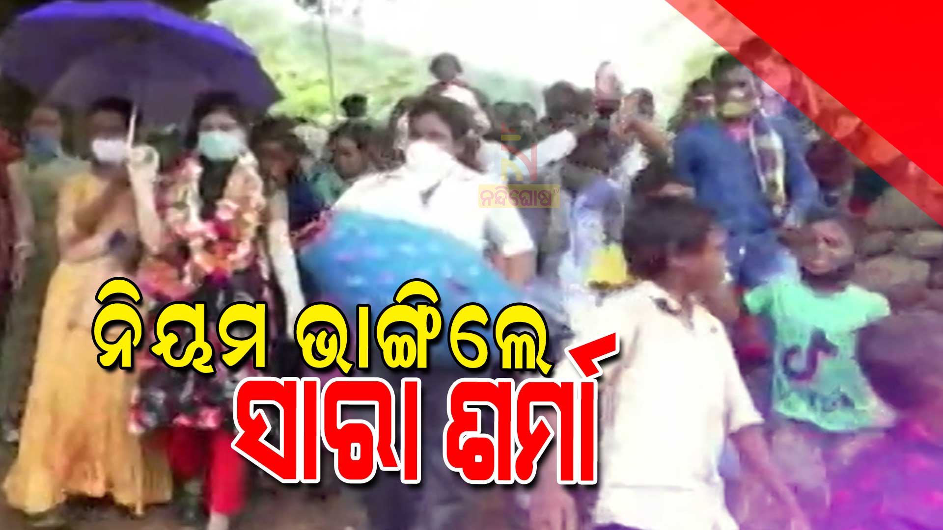 ସ୍ୱାଗତ ପଟୁଆରରେ କୁନି କୁନି ପିଲା ବି ସାମିଲ ହୋଇଥିଲେ । ହେଲେ ପ୍ରଶ୍ନ ଉଠୁଛି, କରୋନା ସଂକଟରେ କେମିତି ଖୋଲାଖୋଲି ନିୟମ ଭାଙ୍ଗୁଛନ୍ତି ଏସପି? ଗାଁ ଲୋକ ସଚେତନ ନହେଲେ ବି ଏସପିଙ୍କ ଉପସ୍ଥିତିରେ କେମିତି ହେଉଛି ନିୟମ ଉଲ୍ଲଂଘନ? ନିୟମକୁ କାର୍ଯ୍ୟକାରୀ କରୁଥିବା ପ୍ରଶାସନିକ ଅଧିକାରୀ ଯଦି ଏଭଳି ନିୟମ ଭାଙ୍ଗିବେ, ତାହାଲେ ସାଧାରଣ ଲୋକଙ୍କୁ ଜଗିବ କିଏ? ସଚେତନତାକୁ ନେଇ ଅନେକ ଥର ଚର୍ଚ୍ଚାରେ ରହିଛନ୍ତି ସାରା ଶର୍ମା । ହେଲେ ଏବେ ନିଜେ କେମିତି ସଚେତନ ହେଲେନି ?