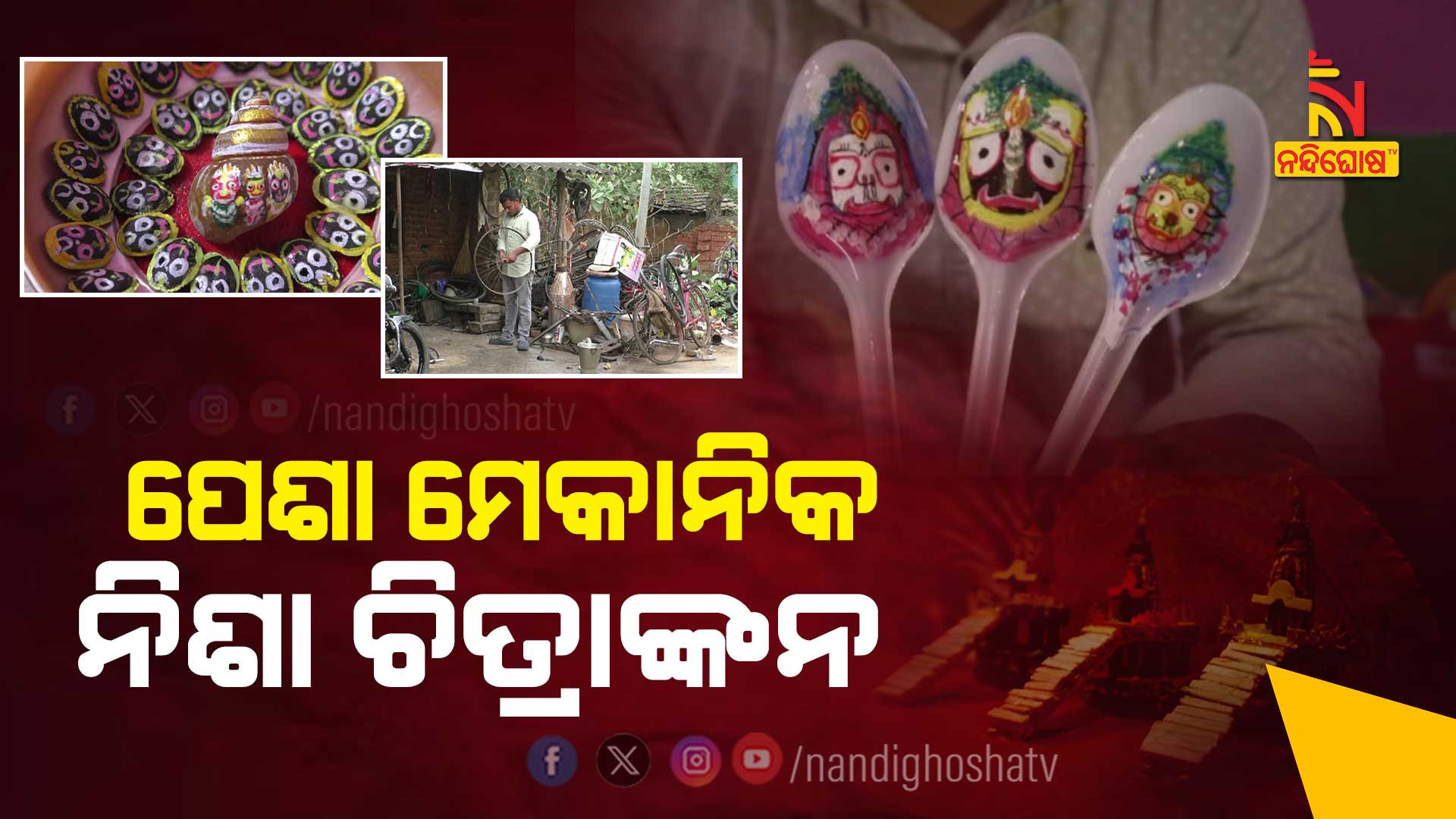 ନନ୍ଦିଘୋଷ ବ୍ୟୁରୋ: ସାଇକେଲ ମେକାନିକଙ୍କ ଚିତ୍ର ଆଙ୍କିବା ନିଶା। ସୂକ୍ଷ୍ମ କାରୁକାର୍ଯ୍ଯରେ ଜଗନ୍ନାଥ ସଂସ୍କୃତିର ଝଲକ। ମଗଜ ଦାନା, ଶାମୁକା ଏବଂ ଶଙ୍ଖରେ ଜଗନ୍ନାଥଙ୍କ ଚିତ୍ର ଆଙ୍କିଛନ୍ତି ସୁବର୍ଣ୍ଣପୁର ସୁବଳୟାର ମୁନା ମହାରଣା। ପେଶାରେ ଜଣେ ସାଇକେଲ ମେକାନିକ ମୁନା କିନ୍ତୁ ନିଶା ତାଙ୍କର ଚିତ୍ର ଆଙ୍କିବା । ୧ ଇଞ୍ଚିଆ କାଠିରେ ସେ ରଥ ମଧ୍ଯ ନିର୍ମାଣ କରିଛନ୍ତି।