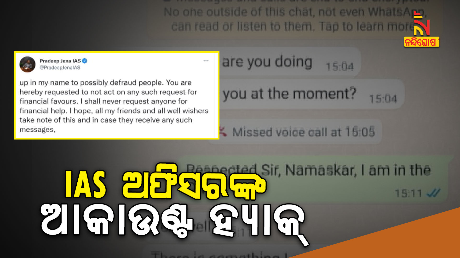 ଆକାଉଣ୍ଟ ହ୍ୟାକ କରି ହସପିଟାଲ୍ ଖର୍ଚ୍ଚ ପାଇଁ ଲୁଟେରା ଟଙ୍କା ମାଗୁଥିବା ଅଭିଯୋଗ ହୋଇଛି । କାହା ନିକଟକୁ ଏପରି ମେସେଜ ଗଲେ ଟଙ୍କା ନପଠାଇ ପୋଲିସ ନିକଟରେ ଅଭିଯୋଗ କରିବାକୁ ପରାମର୍ଶ ଦିଆଯାଇଛି । ଏସଆରସି ପ୍ରଦୀପ ଜେନା ଟ୍ୱିଟ କରି ଲୋକମାନଙ୍କୁ ଏପରି ମେସେଜର ଉତ୍ତର ନଦେବାକୁ କହିଛନ୍ତି  । ସେହିପରି ଏକ ହ୍ୱାଟ୍ସଆପ ଆକାଉଣ୍ଟ ଡିପିରେ ତାଙ୍କ ଫଟୋ ଦିଆଯାଇ ଅର୍ଥ ମଗାଯାଉଛି  । ଏପଟେ ସାଇବର ପୋଲିସ ମମଲା ରୁଜୁ ଠକଙ୍କୁ ଟ୍ରେସ କରିବା ପାଇଁ ଉଦ୍ୟମ କରୁଛି  ।