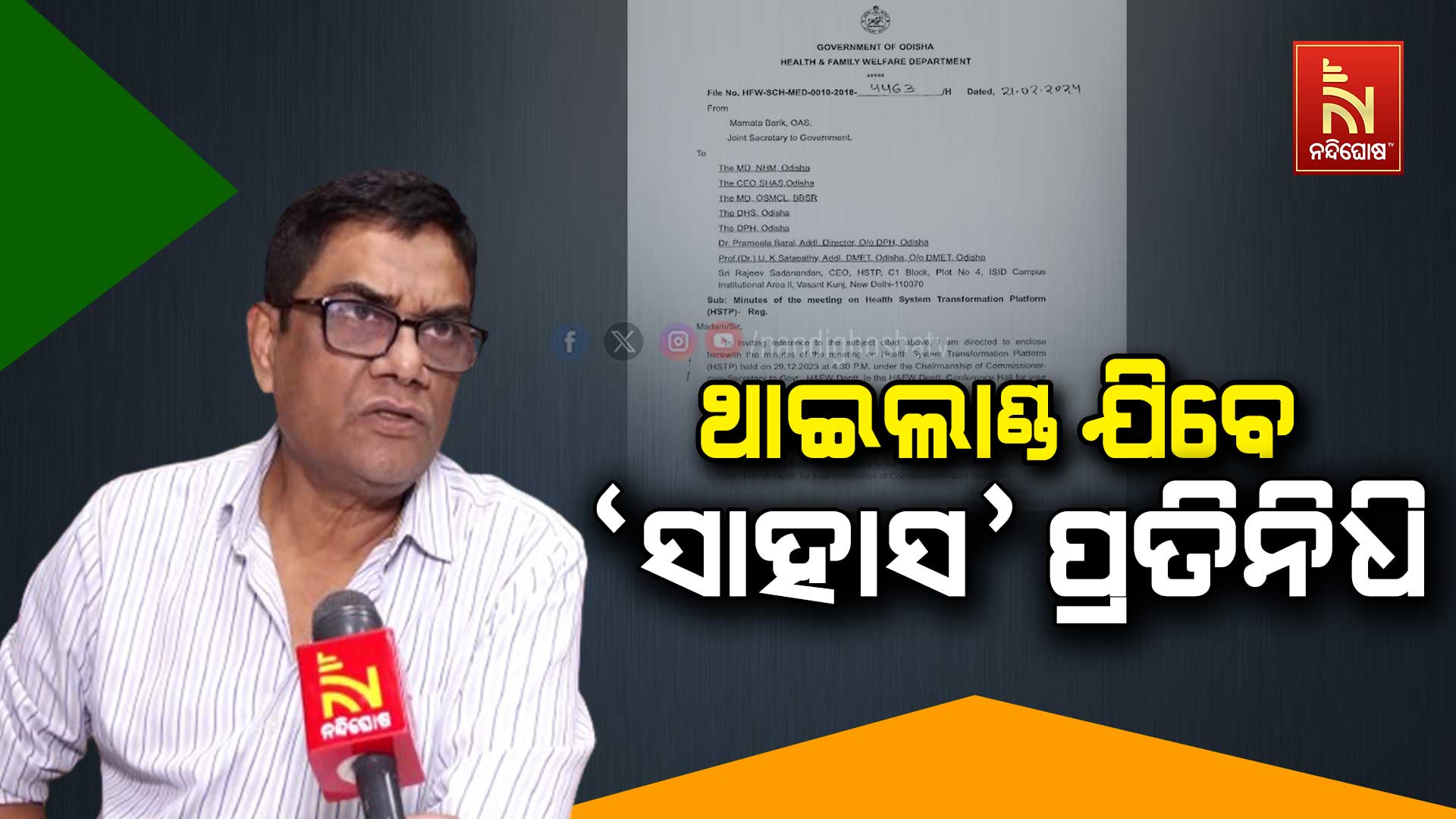 ଭୁବନେଶ୍ବର: ଥାଇଲାଣ୍ଡ ଯିବେ ଷ୍ଟେଟ୍ ହେଲଥ ଆସ୍ୟୁରାନ୍ସ ସୋସାଇଟି ବା ସାହସ ପ୍ରତିନିଧି । ସ୍ବାସ୍ଥ୍ୟ କ୍ଷେତ୍ରକୁ ଆହୁରି ସୁଦୃଢ଼ କରିବା ପାଇଁ ଏକ୍ସପୋଜର ଭିଜିଟ୍ କରାଯିବ । ଥାଇଲାଣ୍ଡରେ ଆୟୋଜନ ହେବ ପିଏମଏସି ୨୦୨୪ । ସେଠାରେ ସେମାନେ ବିଜୁ ସ୍ବାସ୍ଥ୍ୟ କଲ୍ୟାଣ ଯୋଜନାରେ ଲିଙ୍ଗଗତ ସମାନତା ସମ୍ପର୍କରେ ପୋଷ୍ଟର ପ୍ରଦର୍ଶନ କରିବେ । ଯାହା ଉପସ୍ଥାନ ଓ ଅନ୍ୟାନ୍ୟ ନେଟଓ୍ବର୍କିଂ କାର୍ଯ୍ୟରେ ସୁବିଧା ଯୋଗାଇବ ।