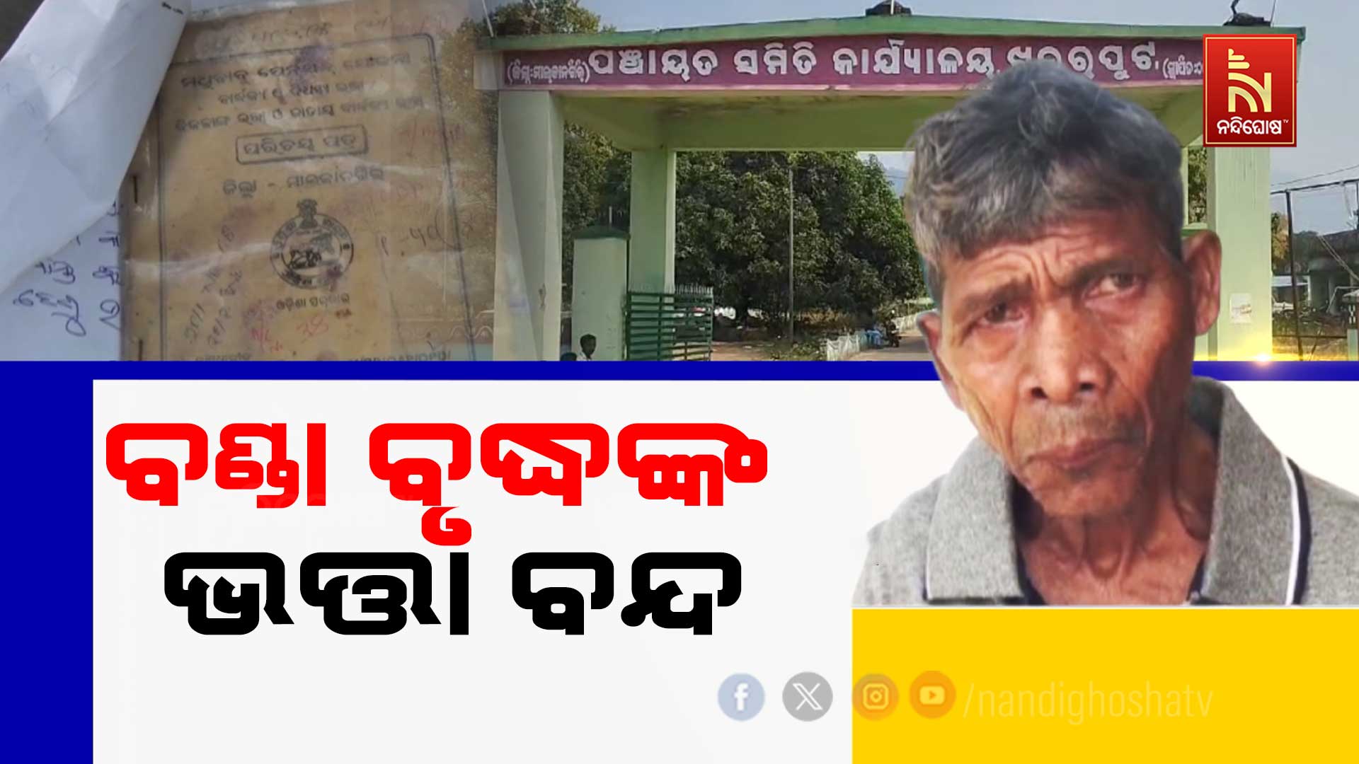 ମାଲକାନଗିରି: ଦିବ୍ୟାଙ୍ଗ ବଣ୍ତା ବୃଦ୍ଧଙ୍କ ଉପରେ କଠୋର ପ୍ରଶାସନ। ଆଧାର କାର୍ଡ ନାହିଁ ବୋଲି ଭତ୍ତା କାଟିଦେଲା ପ୍ରଶାସନ । ଭତ୍ତା ପାଇଁ ବ୍ଲକ କାର୍ଯ୍ୟାଳୟ ଦୌଡ଼ି ଦୌଡ଼ି ନୟାନ୍ତ ହେଲେଣି । ଏଭଳି ଘଟଣା ଦେଖିବାକୁ ମିଳିଛି ମାଲକାନଗିରି ଜିଲ୍ଲା ଖଇରପୁଟ ବ୍ଲକ ଅନ୍ତର୍ଗତ ମୁଦୁଲିପଡ଼ା ପଞ୍ଚାୟତର ପଡ଼େଇଗୁଡ଼ା ଗାଁରେ । ସେହି ଗାଁର ସୋମା କିର୍ଷାନୀ, ବୟସ ୯୦ ବର୍ଷ । ସୋମା ପିଲାଟି ଦିନରୁ ଶାରୀରିକ ଭିନ୍ନକ୍ଷମ ଅଟନ୍ତି । ପୂର୍ବରୁ ଭତ୍ତା ମିଳୁଥିଲା । ଡିଜିଟାଲାଇଜେସନ ହେବା ପରେ ଆଧାର କାର୍ଡ ନଥିବାରୁ ଭତ୍ତା କାଟିଦେଇଛନ୍ତି ସରକାରୀ ଅଧିକାରୀ । ୨ ବର୍ଷ ହେଲାଣି ସରକାରୀ ଦସ୍ତାବିଜରୁ ନାଁ ଉଭାନ ହୋଇଯାଇଛି ।