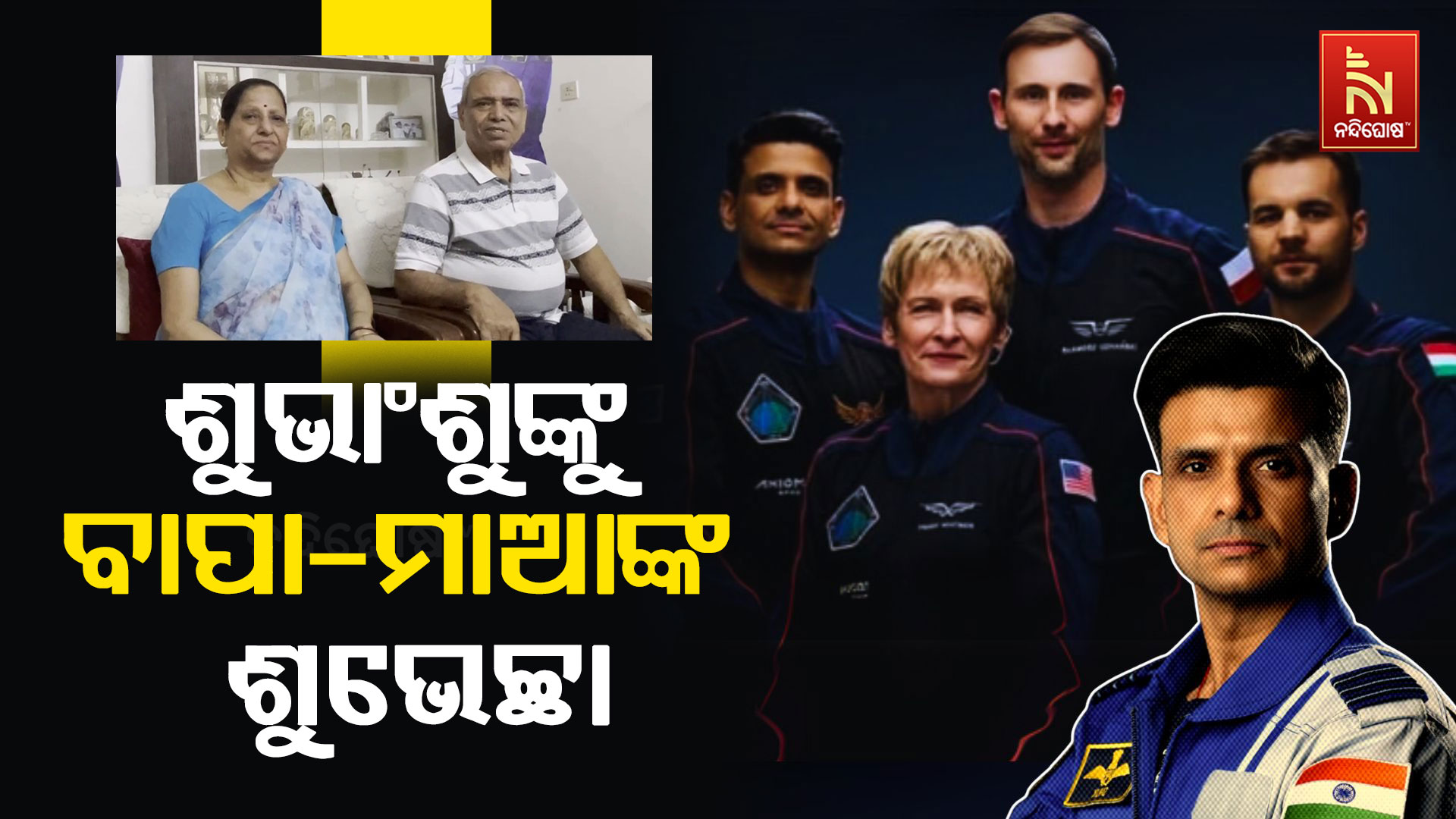 ନନ୍ଦିଘୋଷ ବ୍ୟୁରୋ : ମହାକାଶଚାରୀ ଗ୍ରୁପ କ୍ୟାପଟେନ ଶୁଭାଂଶୁ ଶୁକ୍ଲାଙ୍କୁ ଶୂୁଭେଚ୍ଛା ଜଣାଇଛନ୍ତି ତାଙ୍କ ବାପା ଓ ମାଆ। ବାପା ଶଂଭୁ ଦୟାଲ ଶୁକ୍ଲା ଓ ମାଆ ଆଶା ଶୁକ୍ଲା ପୁଅ ଶୁଭାଂଶୁଙ୍କୁ ମହାକାଶ ଯାତ୍ରା ଲାଗି ଶୁଭେଚ୍ଛା ଜଣାଇଛନ୍ତି। ଆଜି ଭାରତୀୟ ସମୟ ମଧ୍ୟାହ୍ନ ୧୨ଟା ୧ ମିନିଟରେ ମିଶନ ଆରମ୍ଭ ହେବ। ମହାକାଶ ଯାନର ହେବ ଉତକ୍ଷେପଣ। କେତେବେଳେ ଏହି ମିଶନ ଆରମ୍ଭ ହେବ ଏହାକୁ ନେଇ ଶୁଭାଂଶୁଙ୍କ ବାପାମାଆଙ୍କ ମଧ୍ୟରେ ଅନେକ ଉତ୍ସାହ ରହିଛି। ଆମର ସମସ୍ତ ଆଶୀର୍ବାଦ ପୁଅ ଶୁଭାଂଶୁଙ୍କ ଉପରେ ରହିଛି ବୋଲି କହିଛନ୍ତି ଉଭୟ। ମିଶନ ଯେପରି ସଫଳ ହେବ ସେଥିଲାଗି ଭଗବାନଙ୍କ ନିକଟରେ ପ୍ରାର୍ଥନା କରିଛନ୍ତି ଶୁଭାଂଶୁଙ୍କ ବାପାମା। ଲକ୍ଷ୍ନୌ, ରାଜ୍ୟ ଏବଂ ଦେଶ ପାଇଁ ଗୌରଣ ଆଣିଦେବେ ଶୁଭାଂଶୁ ଶୁକ୍ଲା।